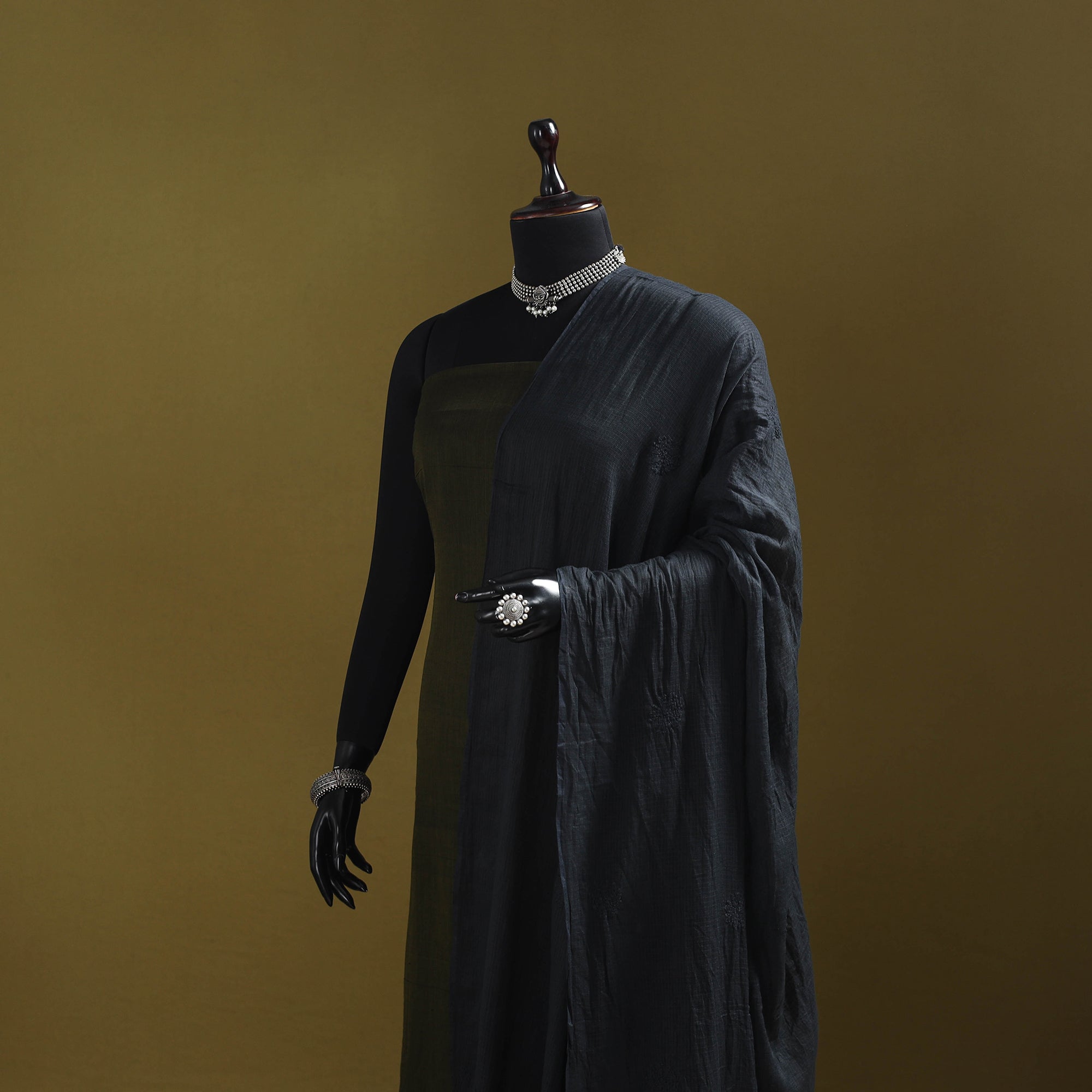 Lucknowi Chikankari Hand Work Pochampally Ikat Unstitched Kurta Material (2.45M) 45