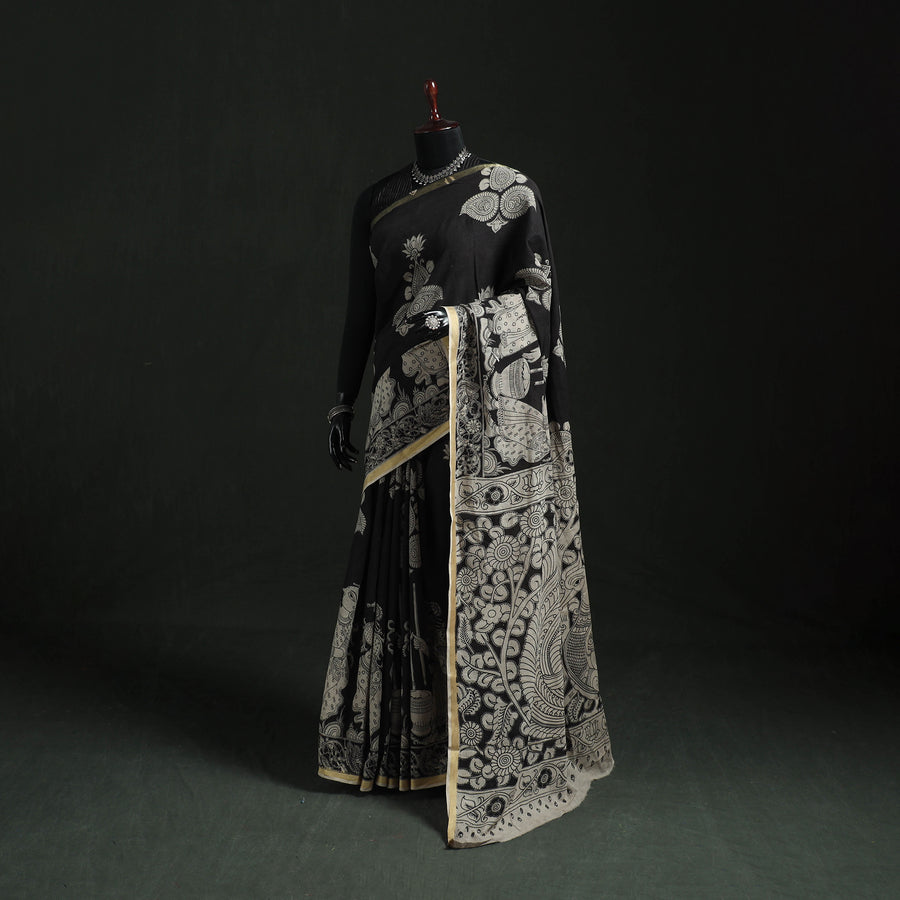 • Kota Doria Cotton Printed Kalamkari Saree 02