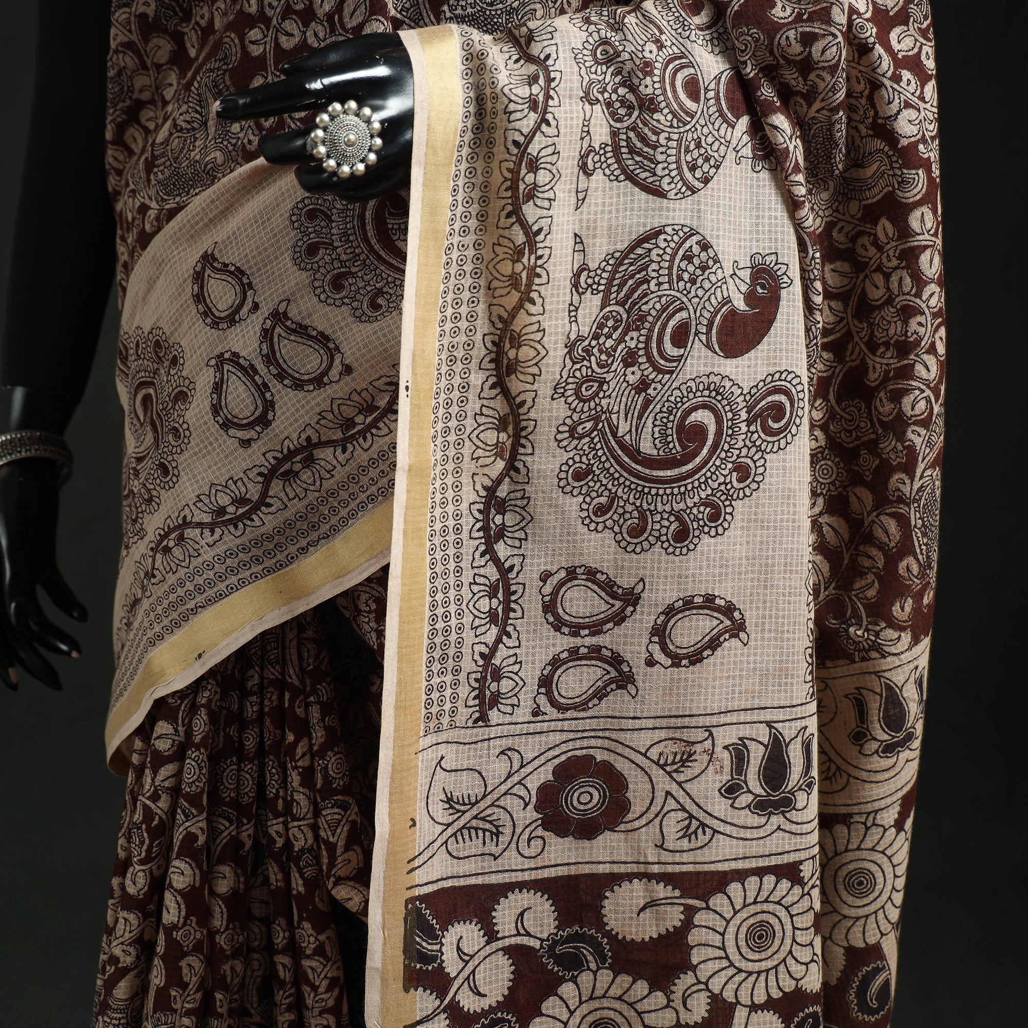 • Kota Doria Cotton Printed Kalamkari Saree 10