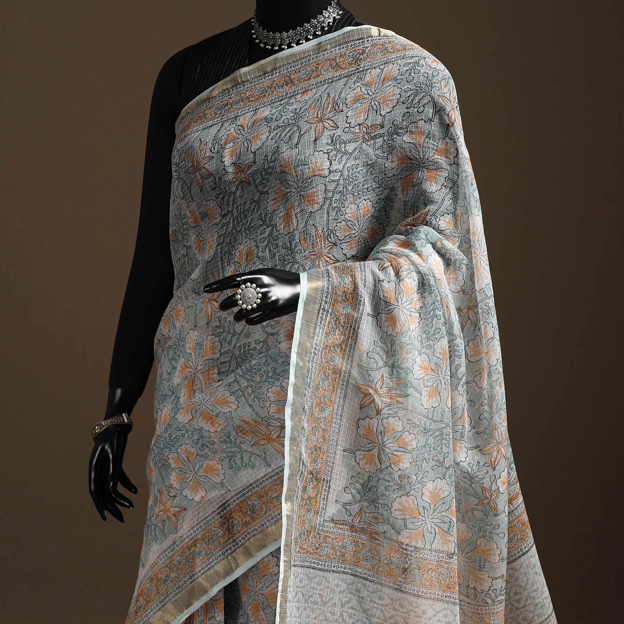 • Blue - kota doria cotton sanganeri saree 11 - handcrafted