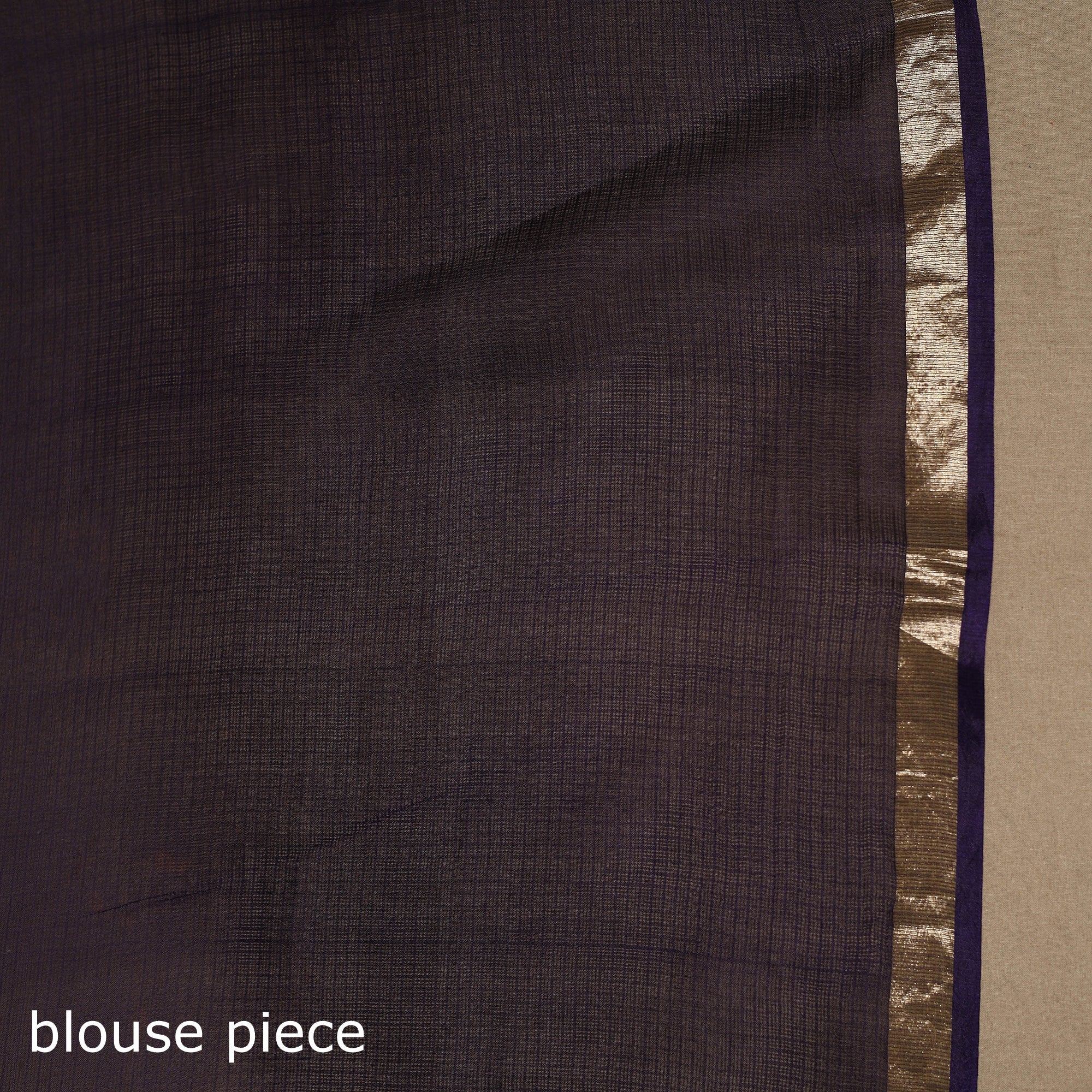 This purple kota doria silk saree with zari border is crafted using traditional shibori tie-dye techniques, where the fabric is tied with clamps or stitches to create unique patterns. Woven in Rajasthan, kota doria is a lightweight cotton-silk blend admired for its airy texture and delicate translucence. Soft, breathable, and easy to drape, this saree is perfect for everyday elegance as well as festive celebrations.
