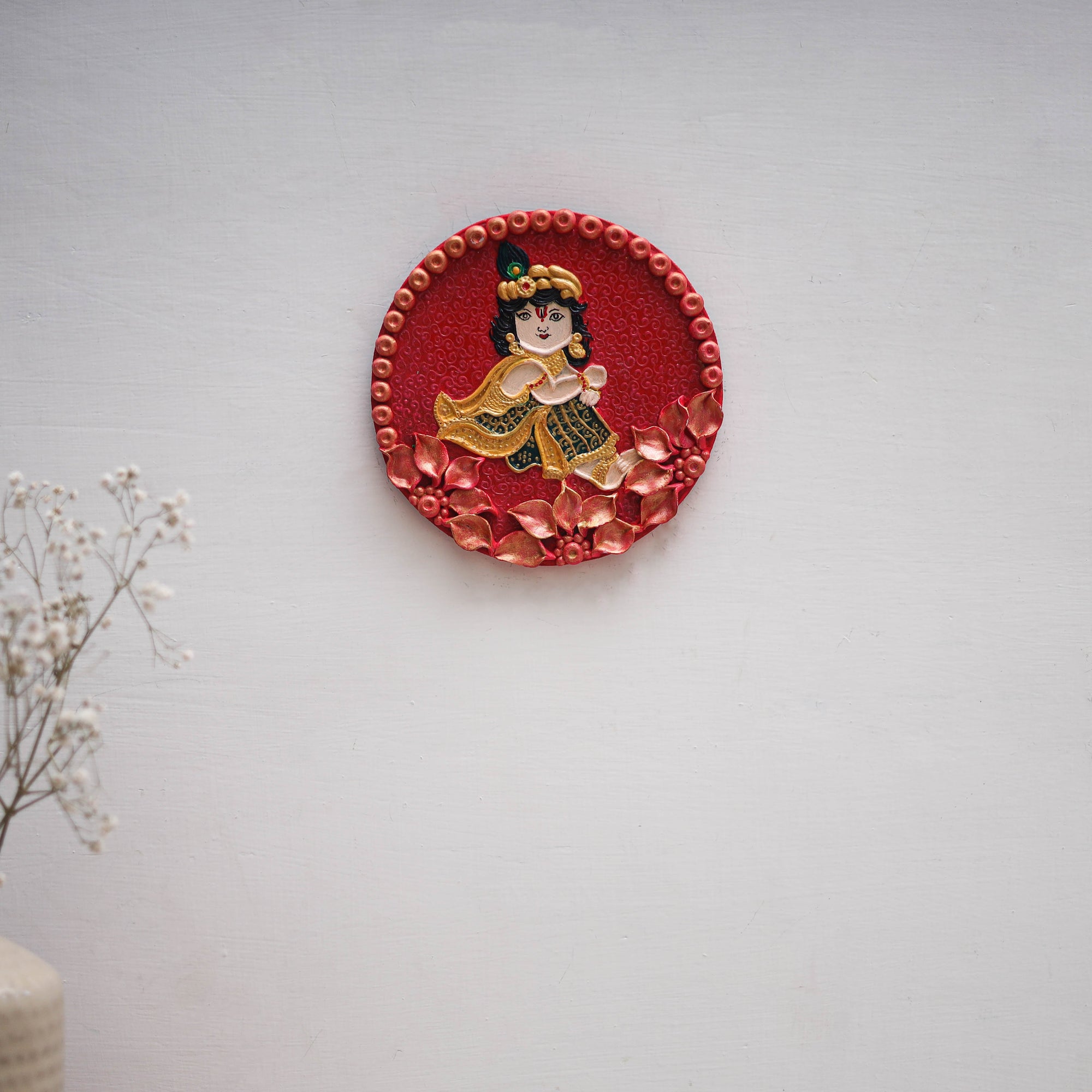 • Krishna - handpainted clay art wall frame 10 - handcrafted