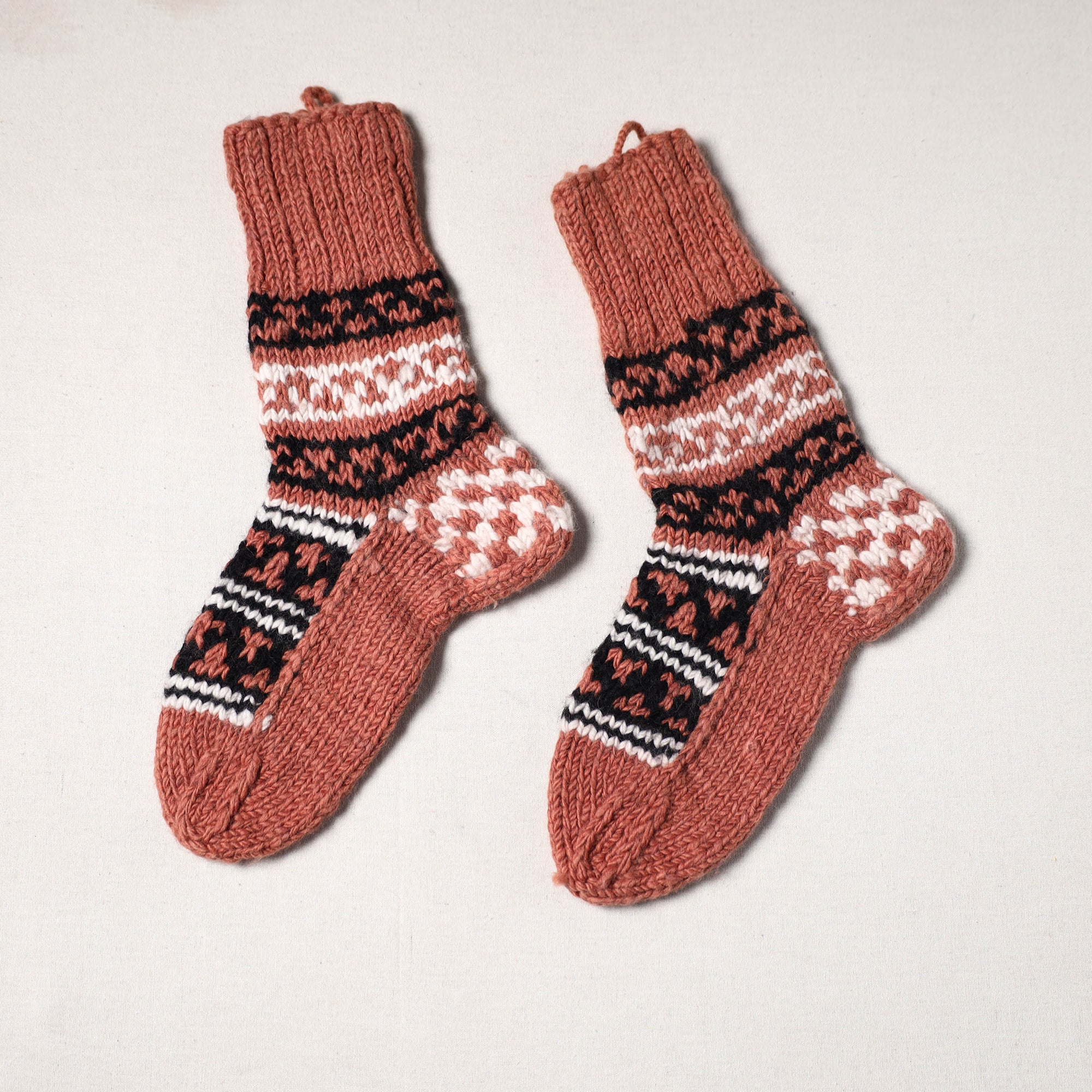 Crafted in Himachal Pradesh, these orange kullu karishma socks are hand-knitted from a fine blend of angora and merino wool. The yarn is handspun, giving each pair its own unique character and charm. Known for their natural warmth and softness, they keep feet cozy and comfortable in cold weather. The fine quality wool adds durability, while the simple yet elegant design makes them ideal for daily wear or thoughtful winter gifting.