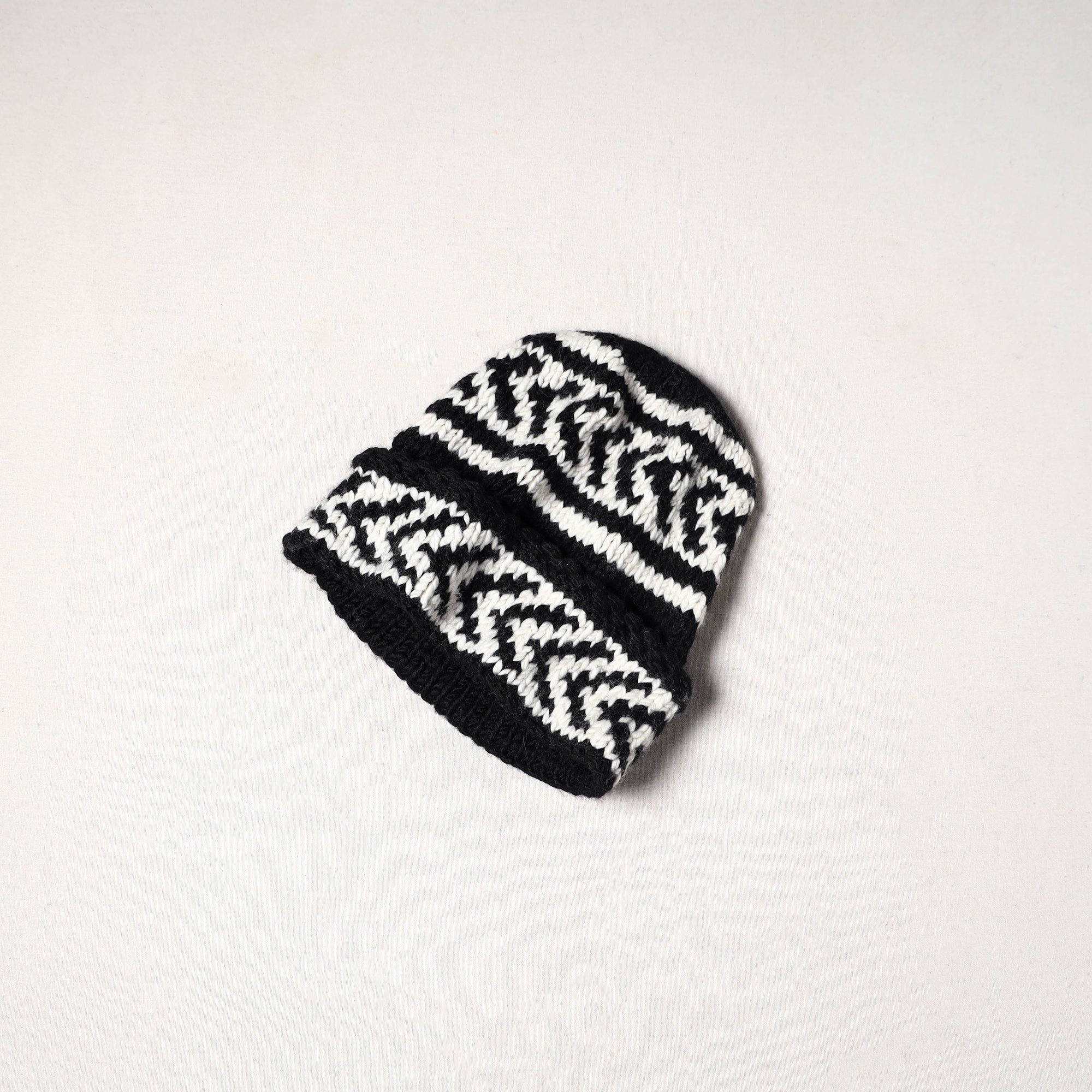 This black kullu karishma cap from Himachal Pradesh is hand-knitted with merino wool. The yarn is handspun, giving every piece a unique charm. Warm, soft, and long-lasting, it keeps you comfortable during cold weather. With its simple yet classic design, this cap is perfect for daily wear or as a thoughtful winter gift.