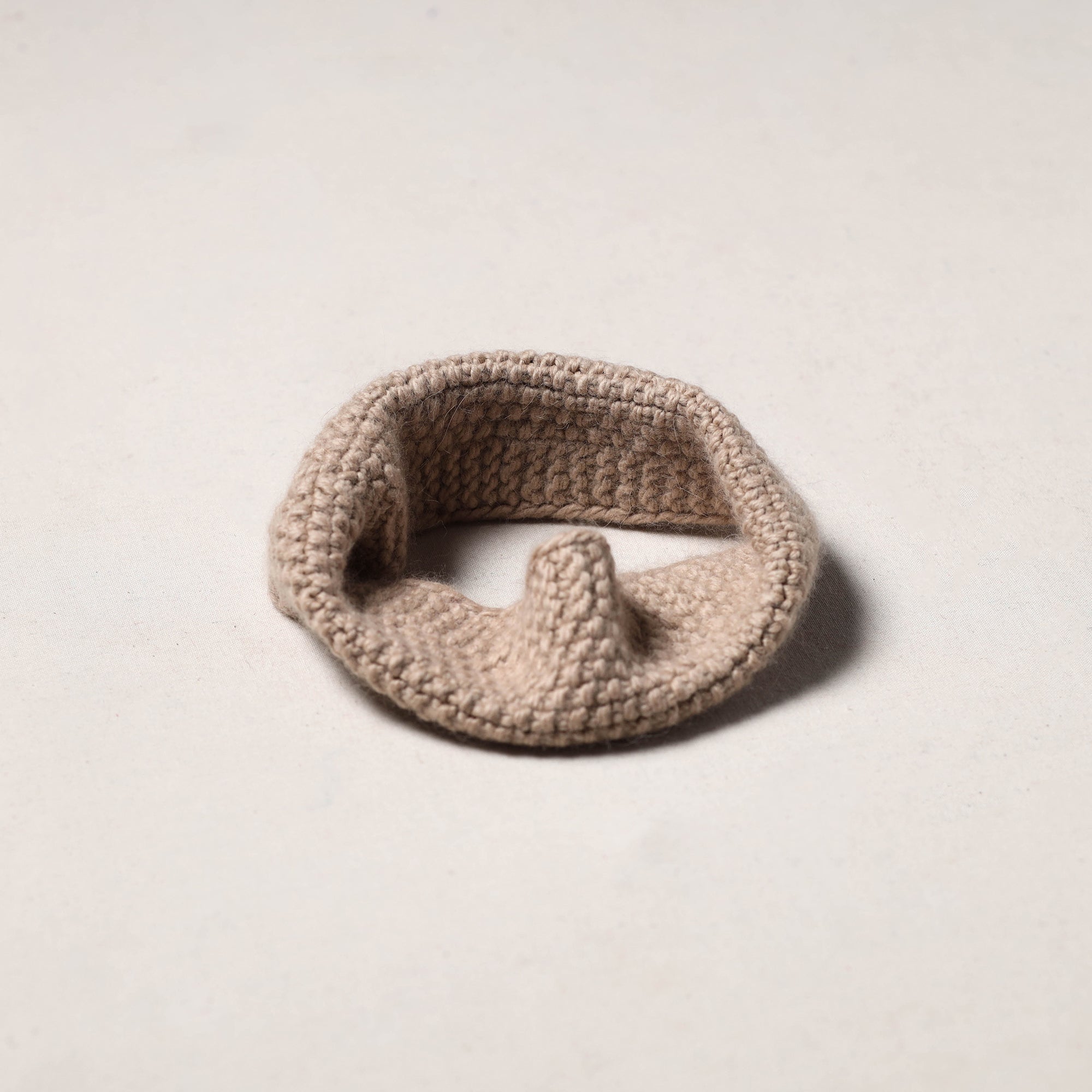This beige kullu karishma headband from Himachal Pradesh is hand-knitted using fine merino wool. The yarn is handspun, giving it a distinct texture and authentic appeal. Soft, warm, and durable, it keeps the ears comfortable in cold weather while adding elegance to any look. A versatile accessory, it is ideal for everyday wear or thoughtful winter gifting.