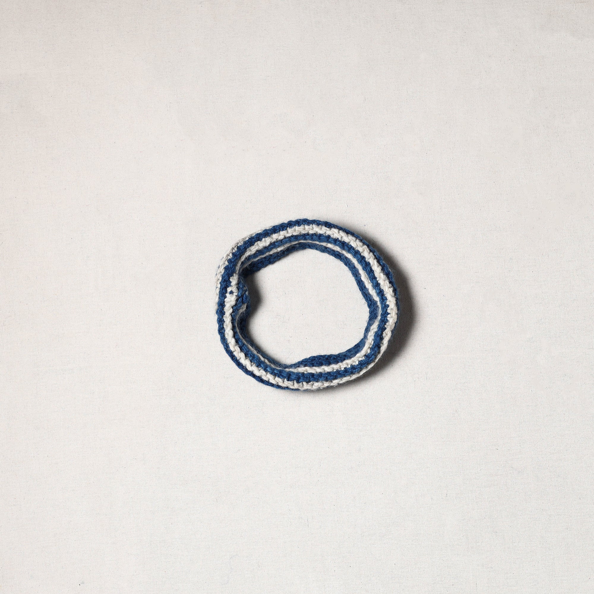 This blue kullu karishma headband from Himachal Pradesh is hand-knitted using fine merino wool. The yarn is handspun, giving it a distinct texture and authentic appeal. Soft, warm, and durable, it keeps the ears comfortable in cold weather while adding elegance to any look. A versatile accessory, it is ideal for everyday wear or thoughtful winter gifting.