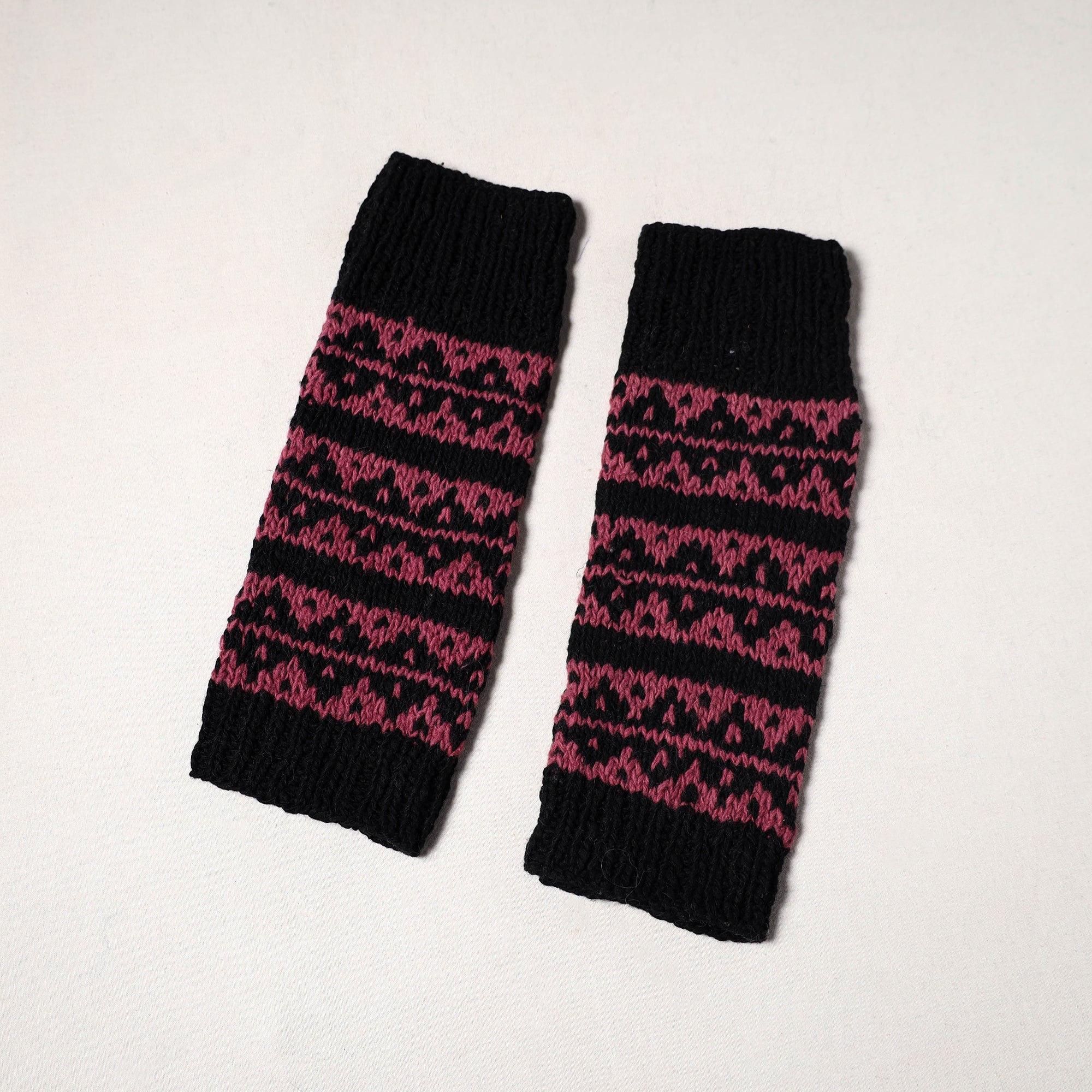 These black kullu karishma leg warmers from Himachal Pradesh are hand-knitted with fine merino wool. The handspun yarn gives each piece its own unique character. Soft, warm, and durable, they are perfect for winter days, keeping your legs cozy and comfortable. With their minimal yet stylish design, they are ideal for both everyday wear and thoughtful winter gifting.