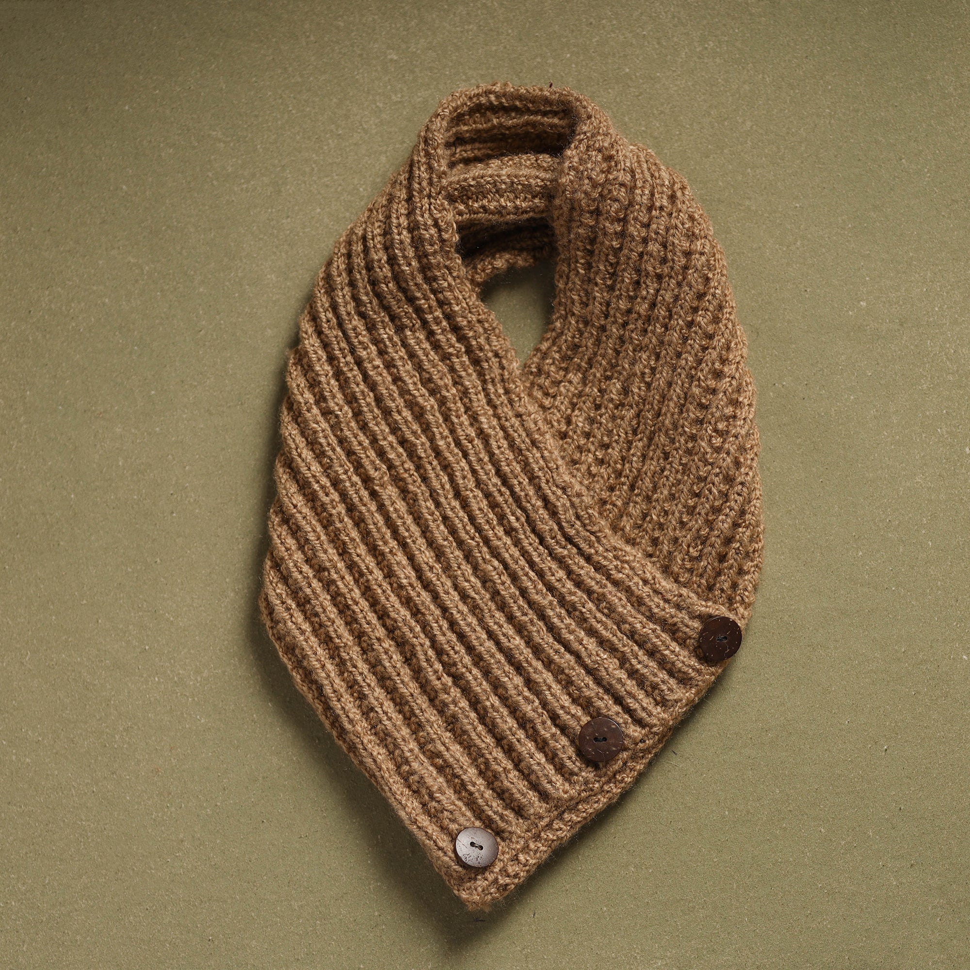 Wrap yourself in the warmth of Kumaon’s artisanal heritage with this beige hand-knitted woollen button cowl. Crafted by artisans in Uttarakhand. Using traditional techniques, this cowl offers rustic elegance and cozy comfort for chilly days. Made from durable acrylic wool, it blends tradition with modern sensibilities.