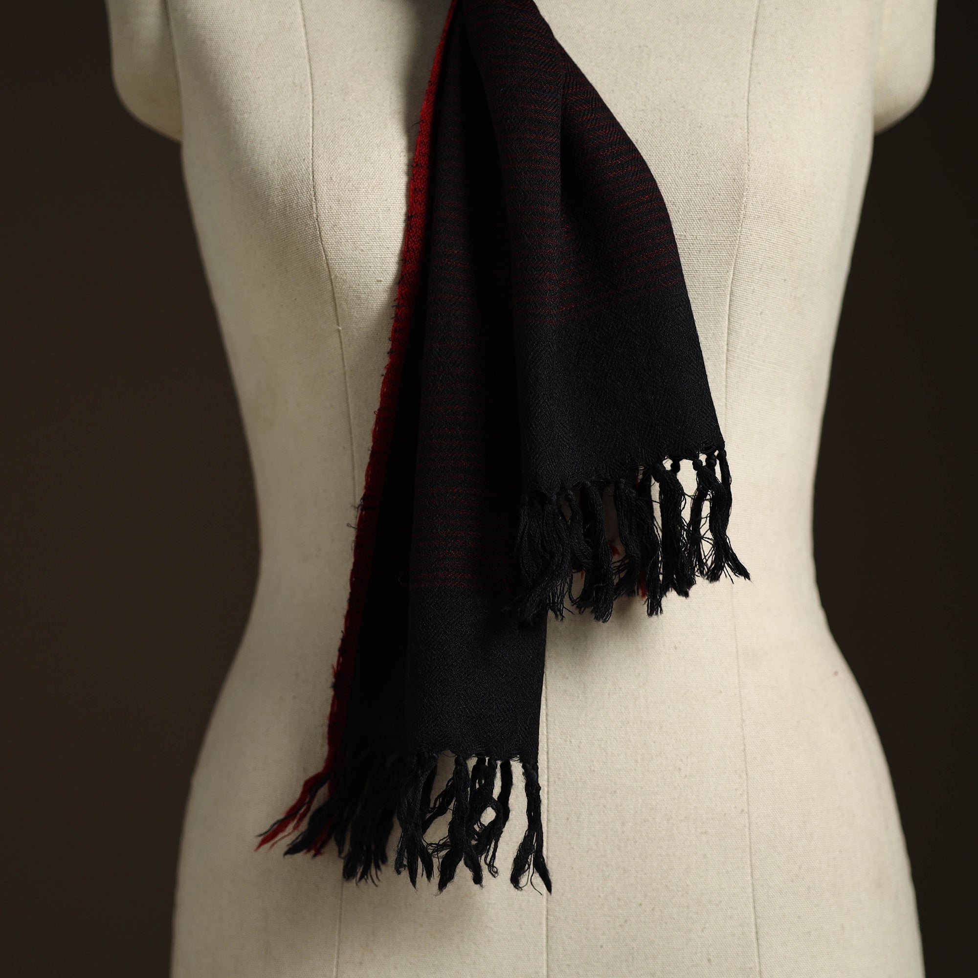 This black merino wool scarf is handwoven by Kilmora in Kumaun, Uttarakhand. Made with fine merino wool, it is perfect for keeping cozy while offering warmth and style. Whether paired with a casual outfit or worn as an elegant accessory, this scarf adds both comfort and tradition to your wardrobe.