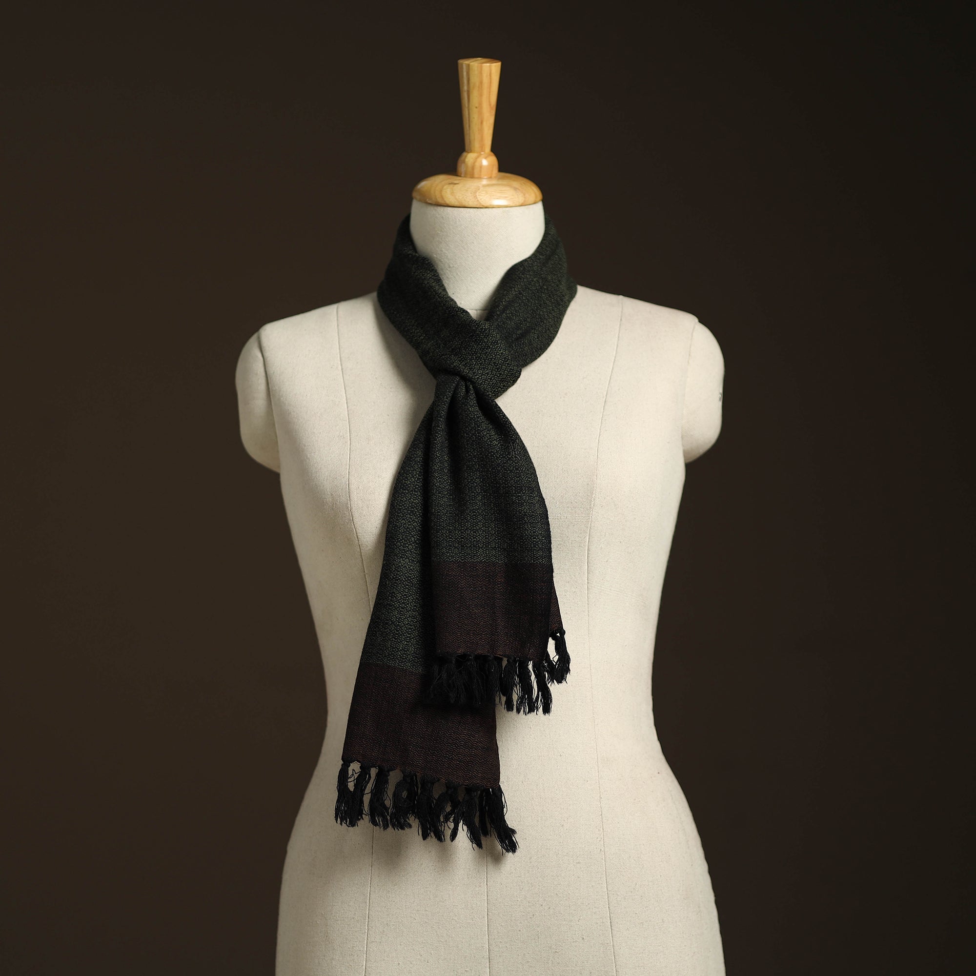 • Black - kumaun handwoven merino wool scarf 150 - handcrafted