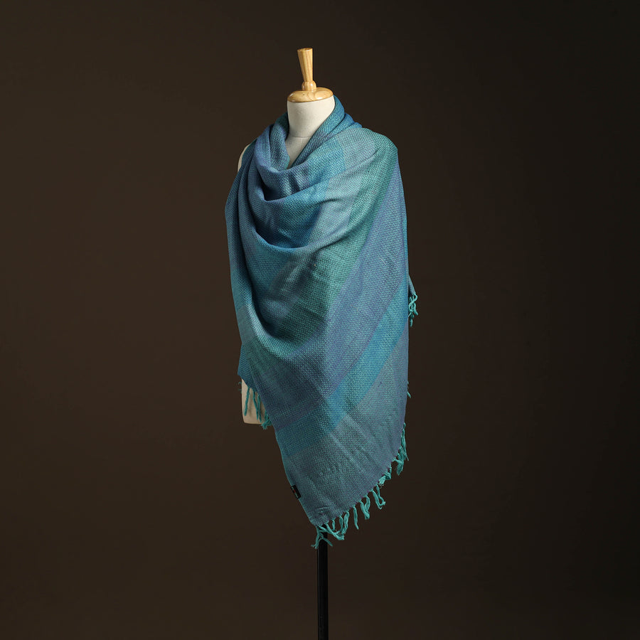 Blue - Kumaun Handwoven Merino Wool Shawl for Women 32