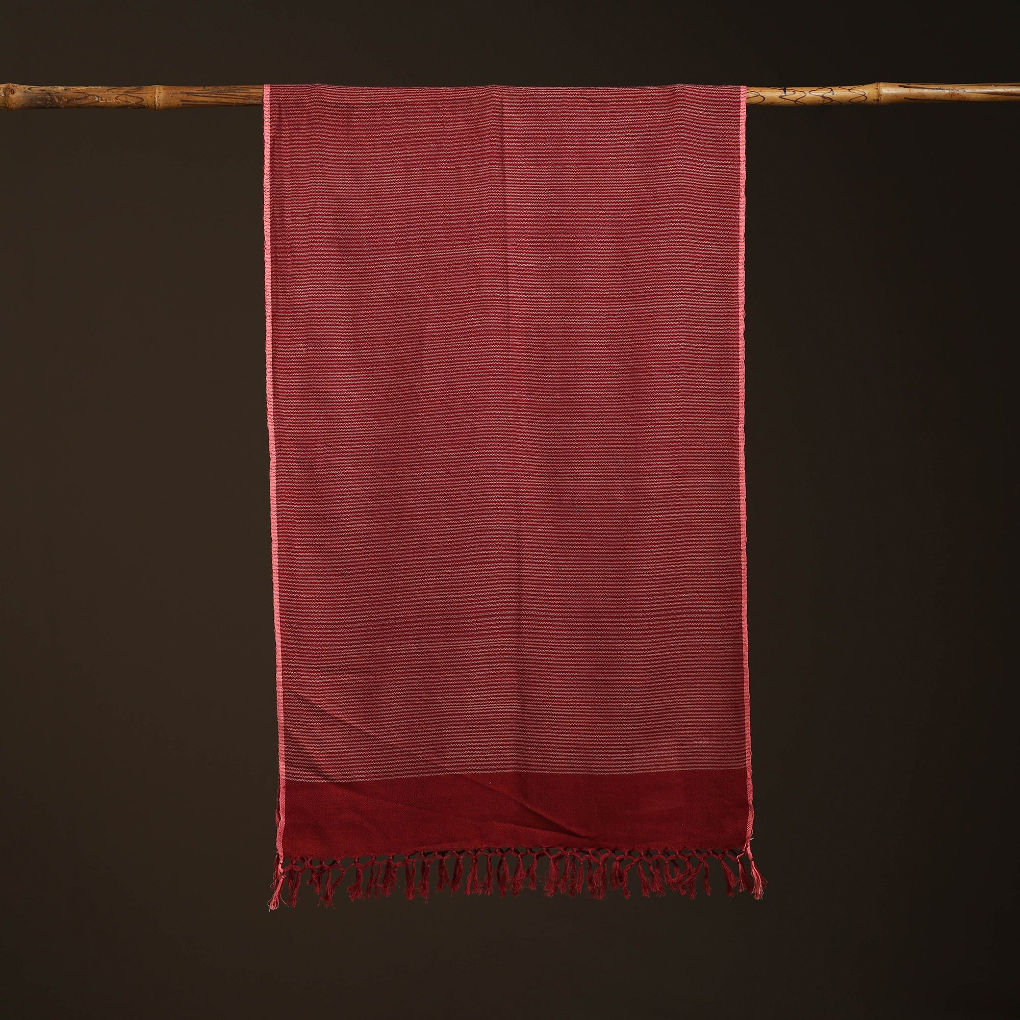 Wrap yourself in elegance with this maroon kumaon handwoven merino wool and cotton stole, meticulously crafted by skilled artisans in Uttarakhand. Blending merino wool with cotton, this stole offers exceptional softness and comfort while reflecting the rich heritage of handwoven textiles. Its smooth feel and versatile design make it perfect for everyday wear or special occasions.