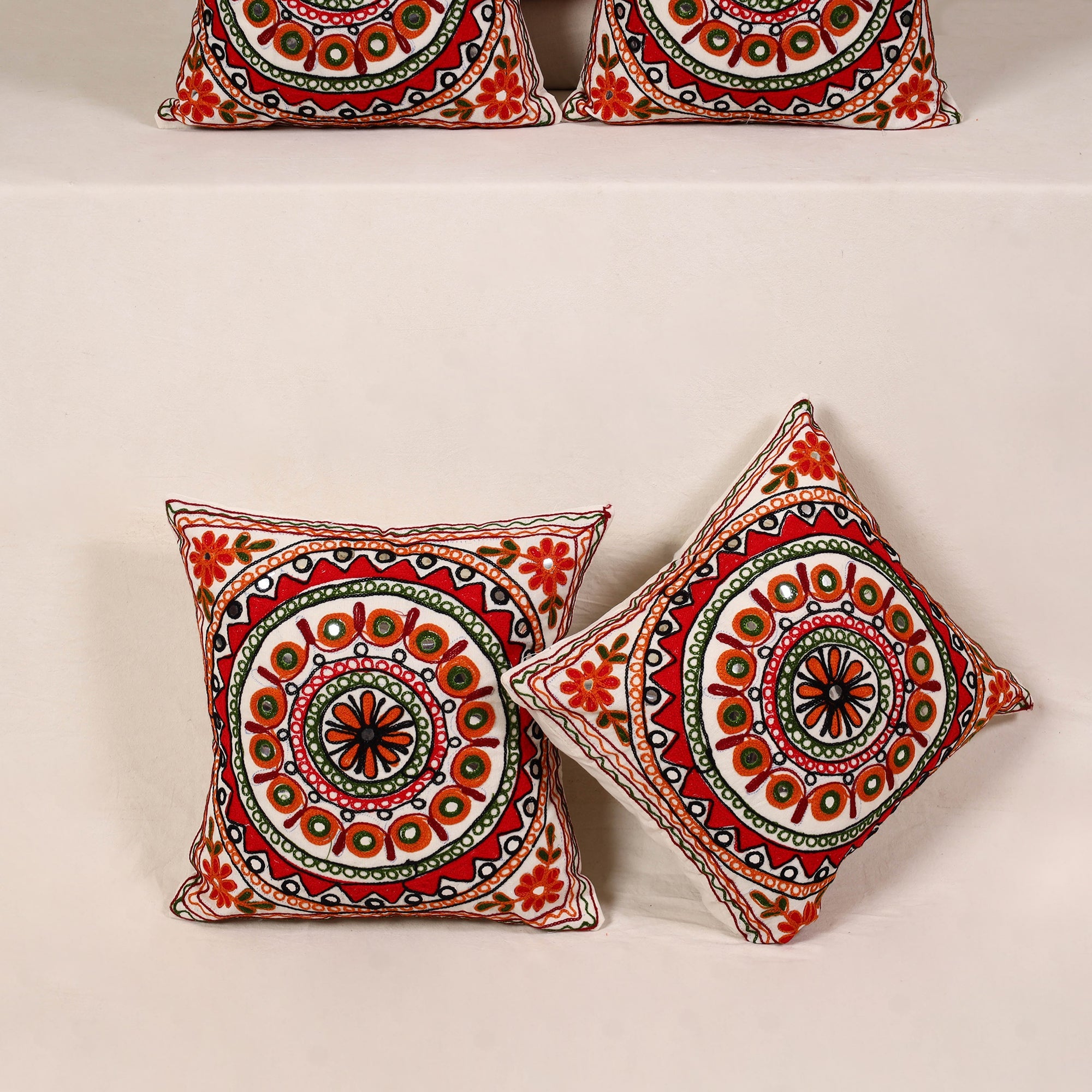 Red - Kutch Aari Hand Embroidery Cushion Cover (Set of 5) 05