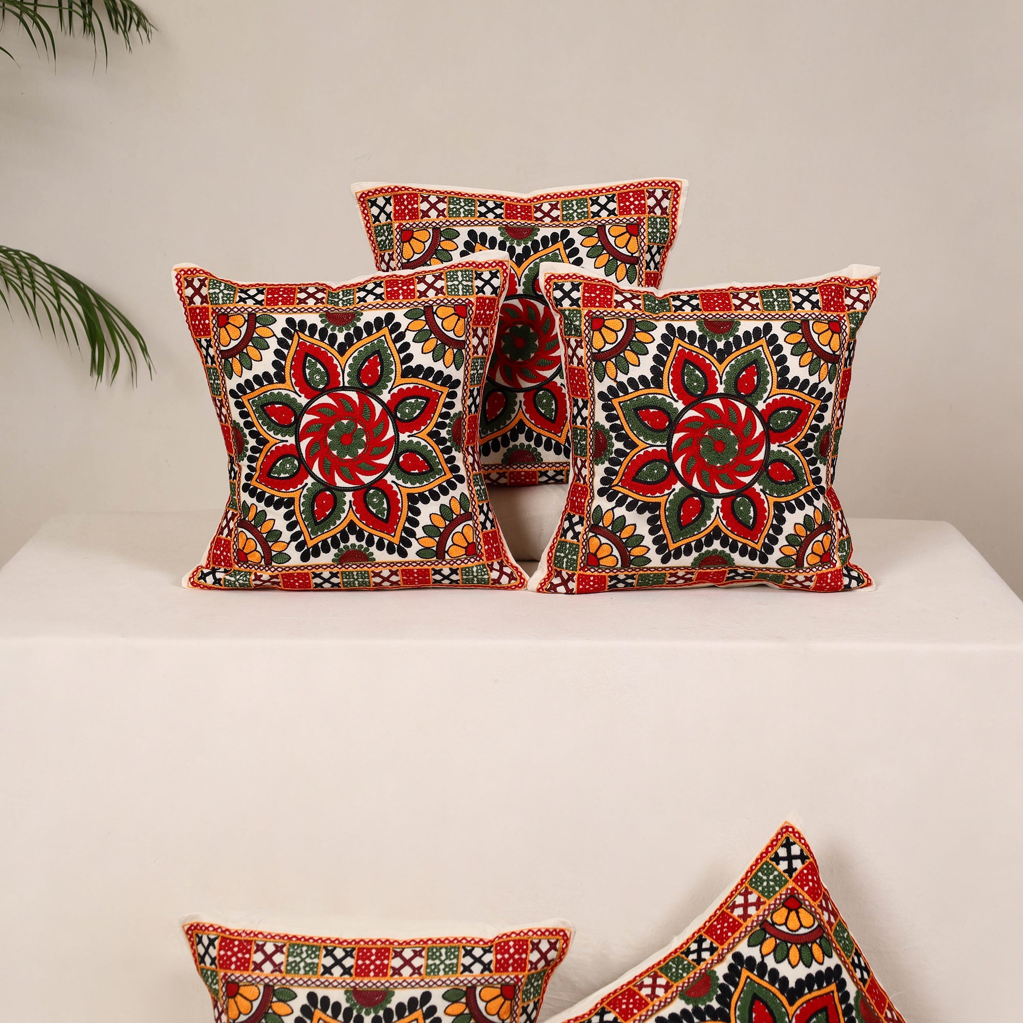Red - Kutch Aari Hand Embroidery Cushion Cover (Set of 5) 10