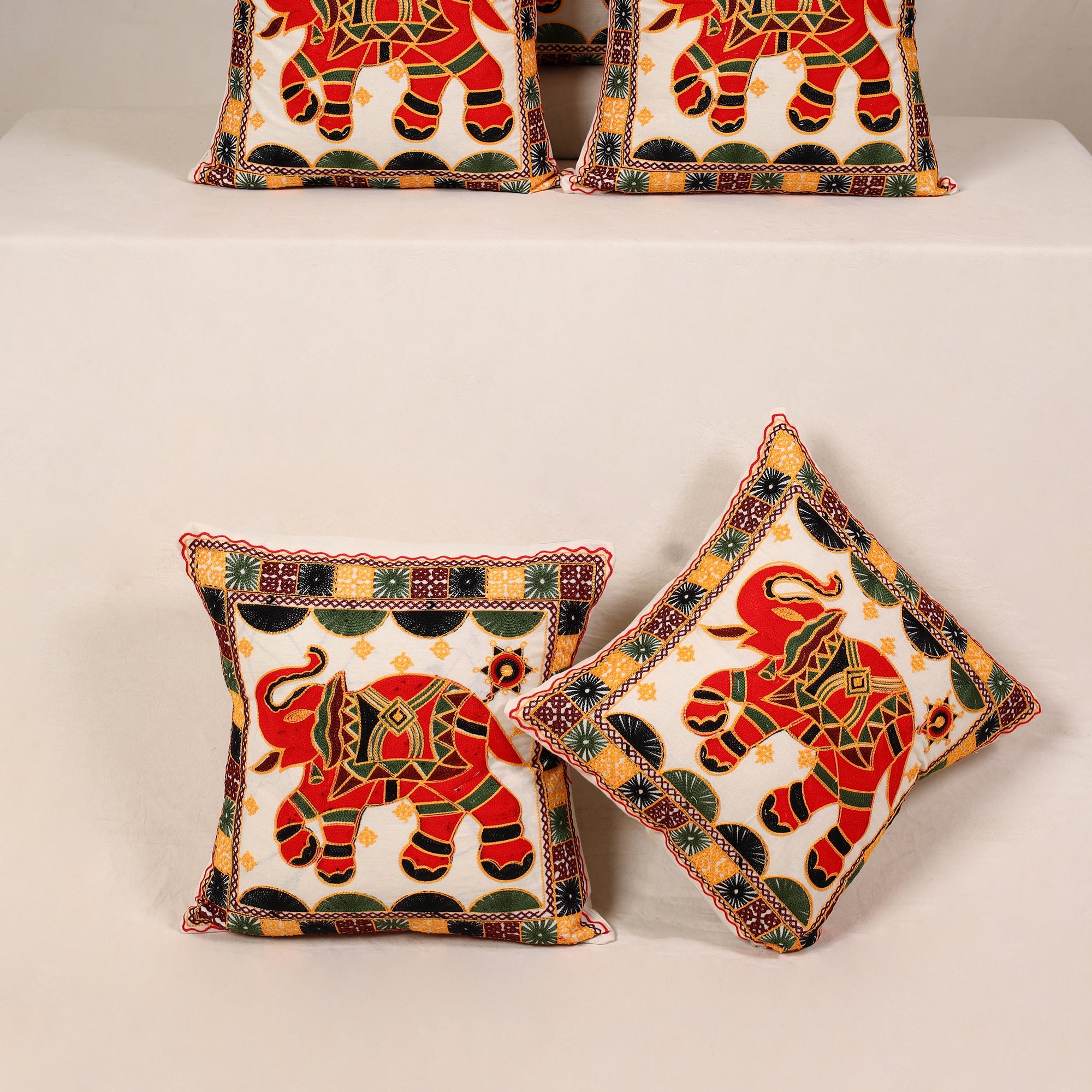 Red - Kutch Aari Hand Embroidery Cushion Cover (Set of 5) 14