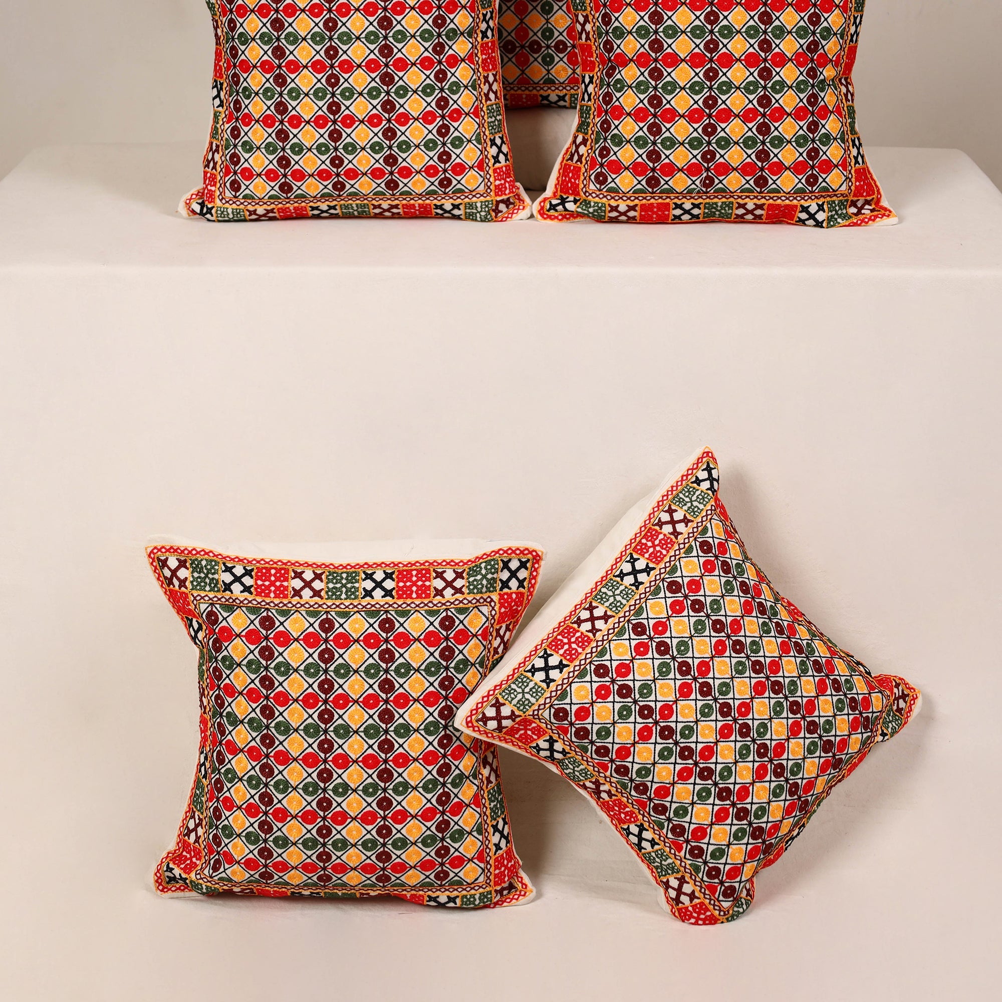 • Red - kutch aari hand embroidery cushion cover (set of 5)