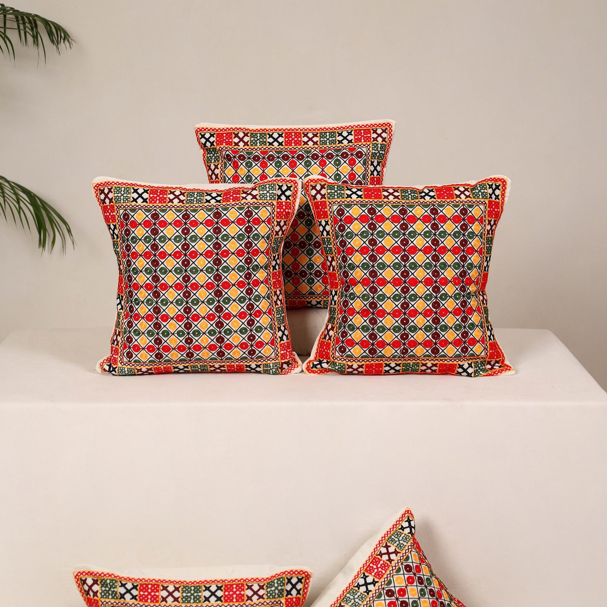 Red - Kutch Aari Hand Embroidery Cushion Cover (Set of 5) 17