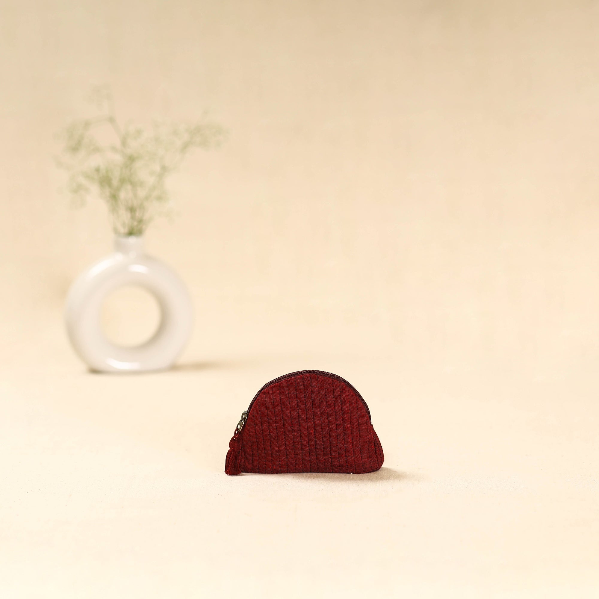 This black cotton coin pouch features ahir hand embroidery from Kutch, made by Ahir and Meghwaad Gurjar women. Known for its bold “thassa” style, the embroidery is filled with colourful motifs and mirrors inspired by nature. Using fine stitches like saankdi and bakhiyo, it beautifully blends tradition and modern design. Perfect for carrying coins, keys, or other small essentials.