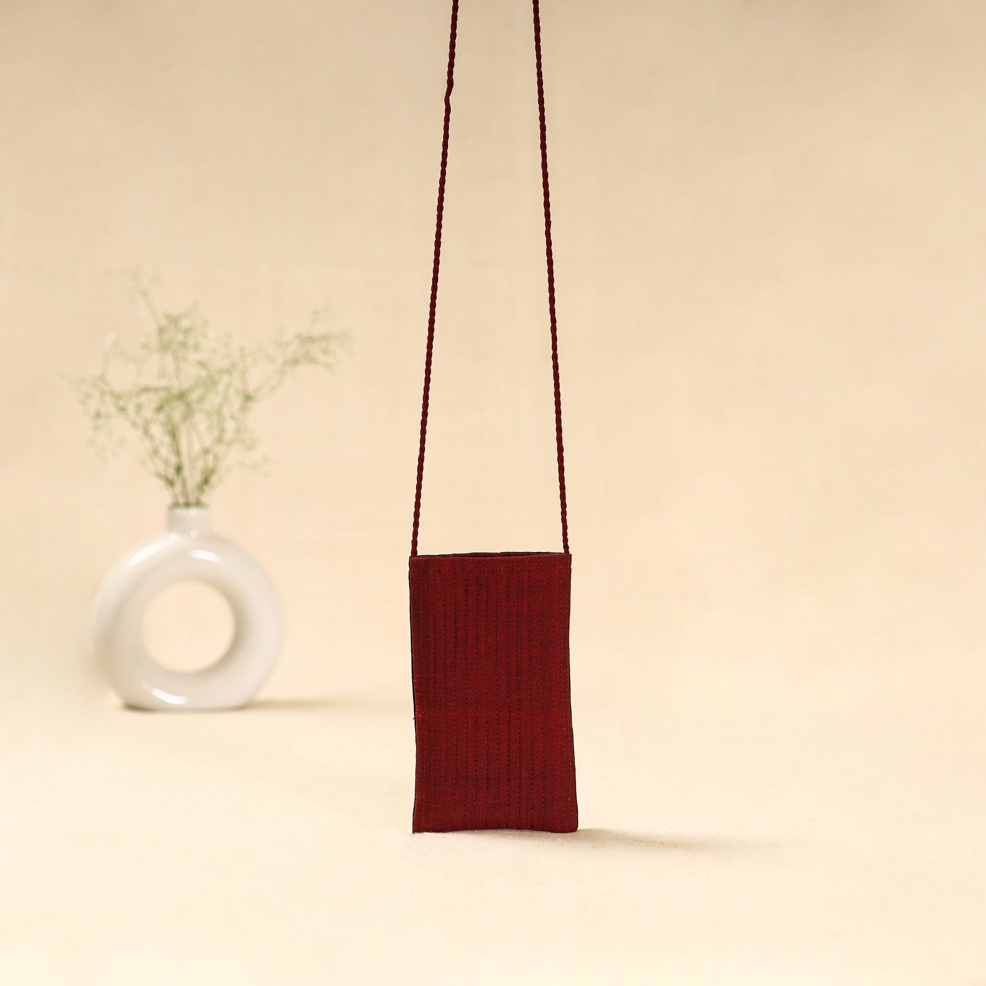 This black cotton sling dori mobile pouch features Ahir hand embroidery from Kutch, made by Ahir and Meghwaad Gurjar women. Known for its bold “thassa” style, the embroidery is filled with colourful motifs and mirrors inspired by nature. Using fine stitches like saankdi and bakhiyo, it beautifully blends tradition and modern design. Perfect for carrying your phone and small essentials with ease.