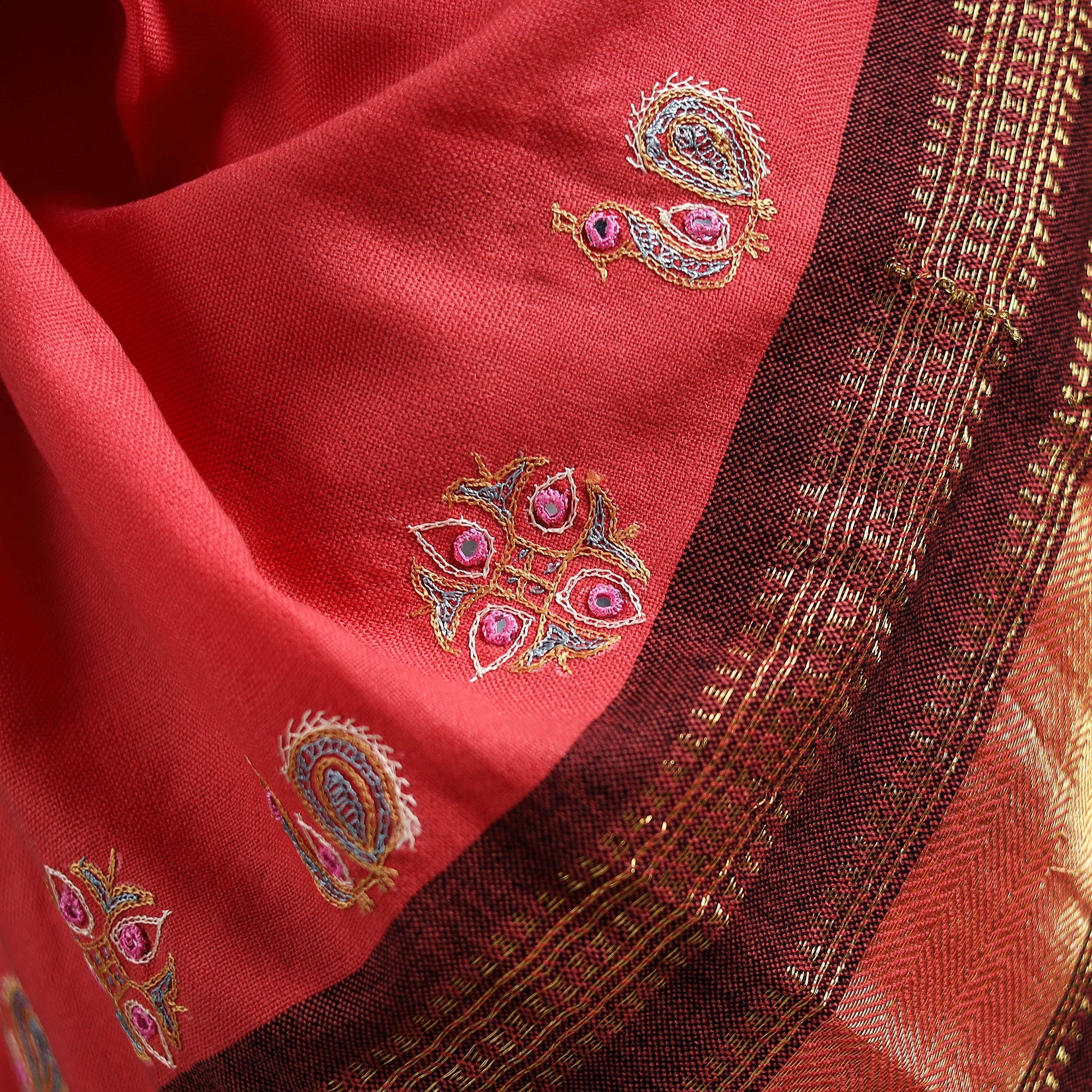 Kutch Handwoven Zari & Mirror Work Acrylic Wool Shawl 25