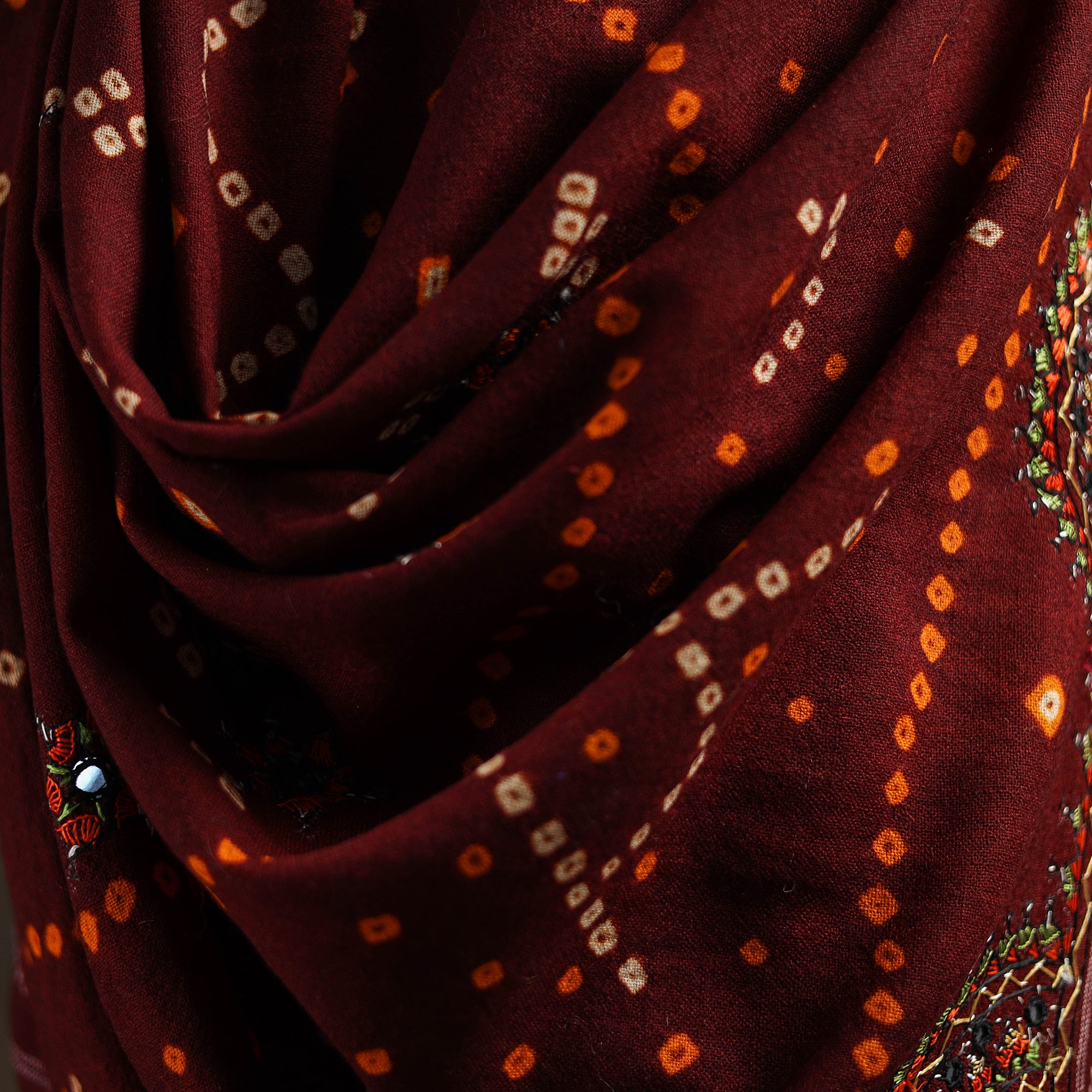 Kutch Bandhani Handwoven Neran Hand Embroidery Merino Wool Shawl 46