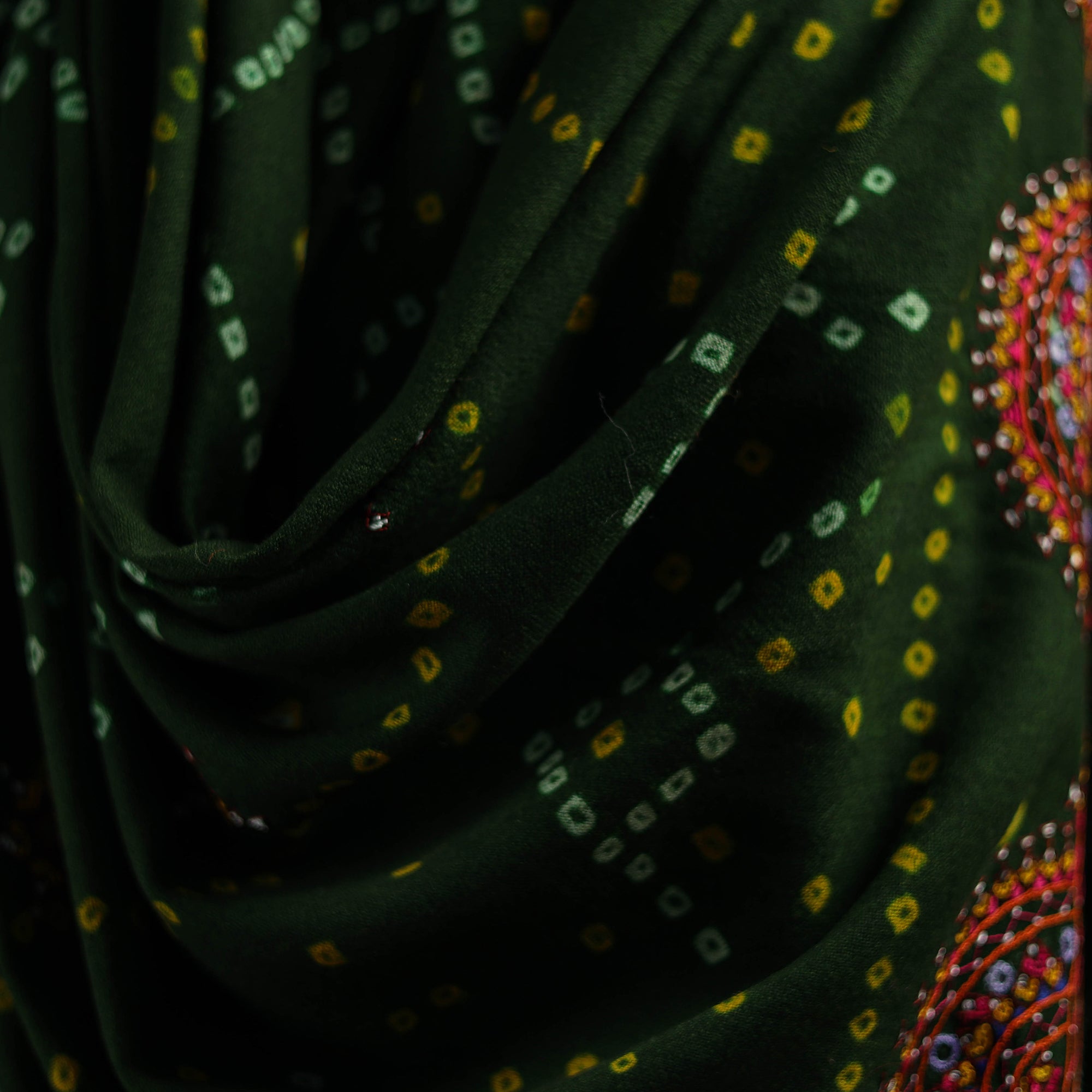 • Kutch Bandhani Handwoven Neran Hand Embroidery Merino Wool Shawl 62