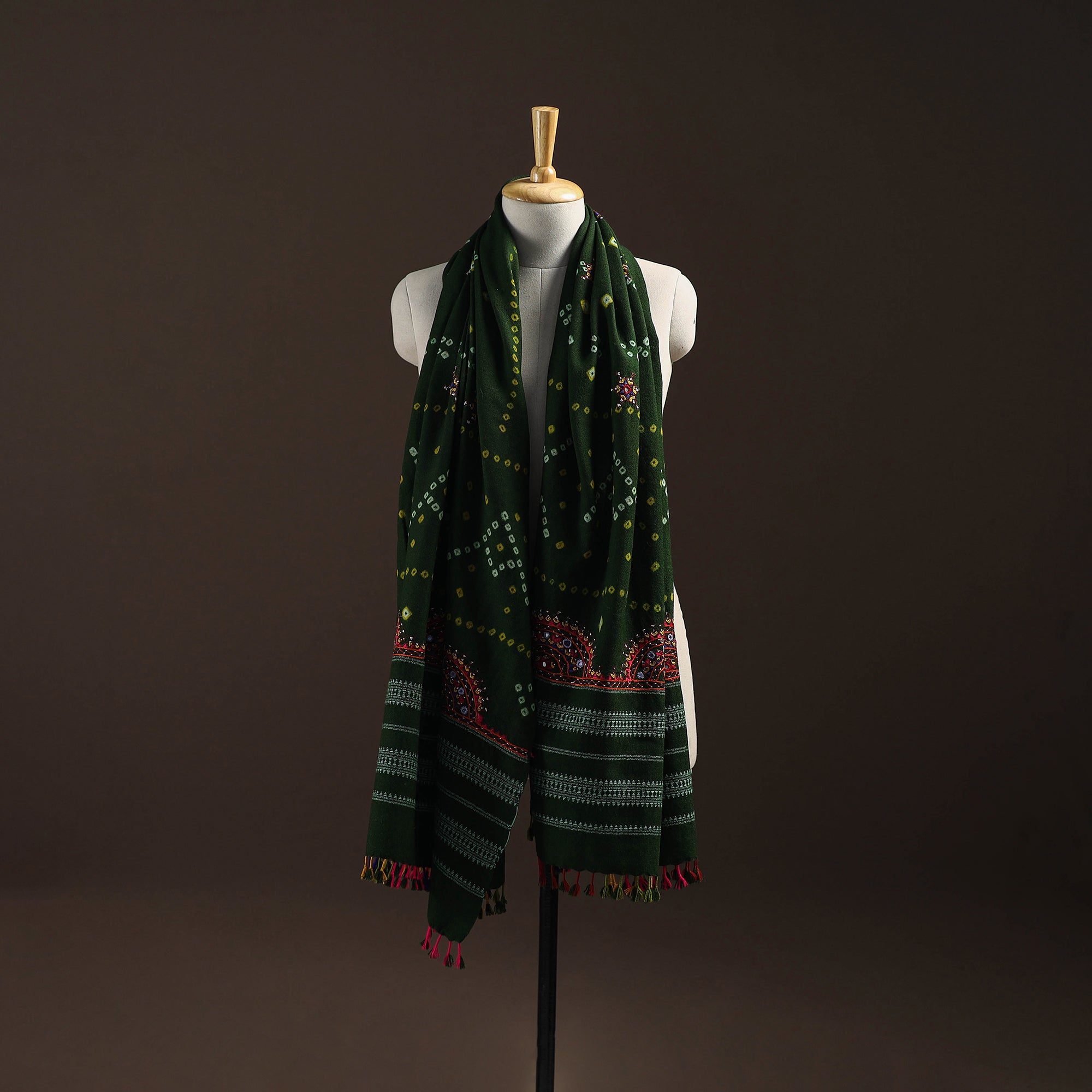 Kutch Bandhani Handwoven Neran Hand Embroidery Merino Wool Shawl 62