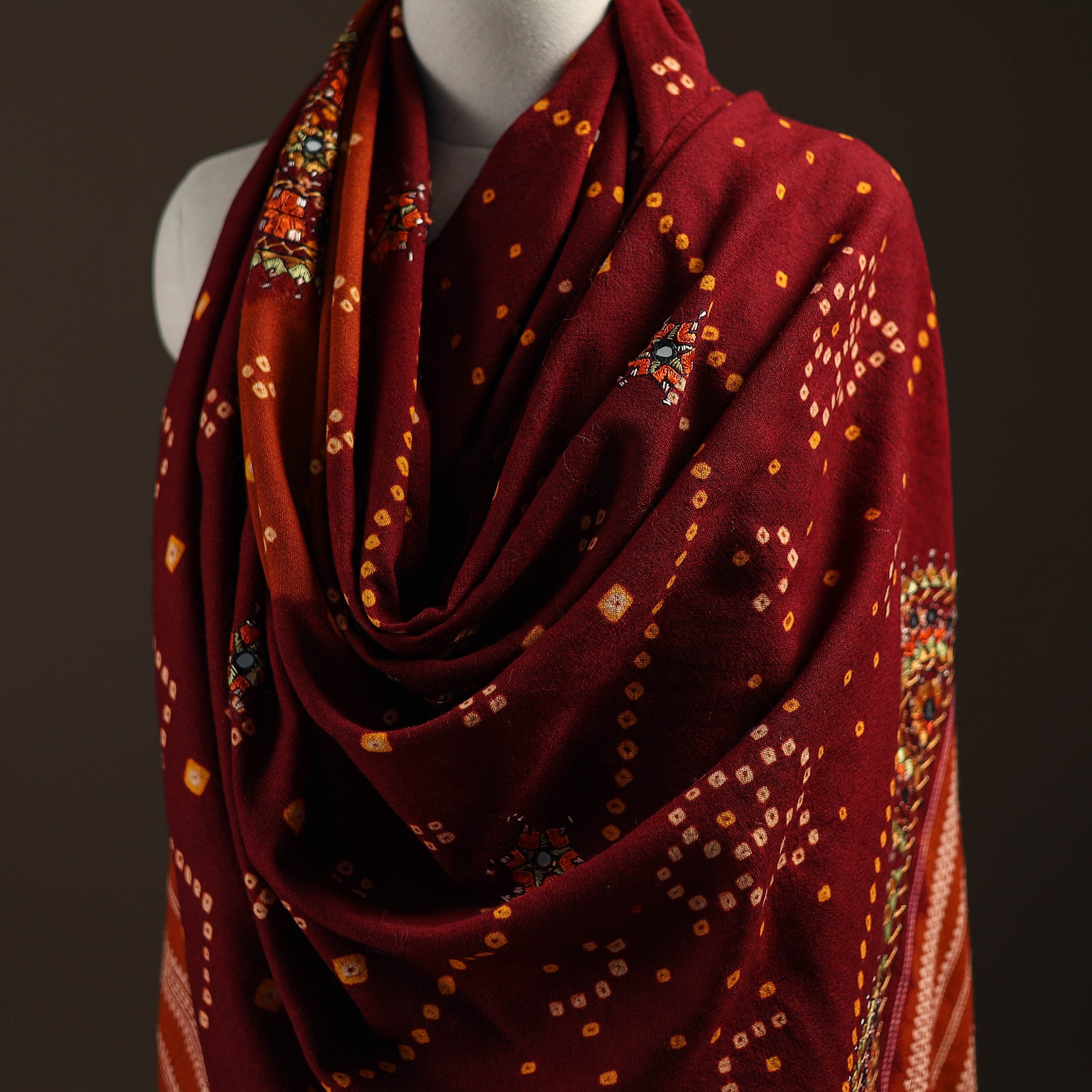 Kutch Bandhani Handwoven Neran Hand Embroidery Merino Wool Shawl 63