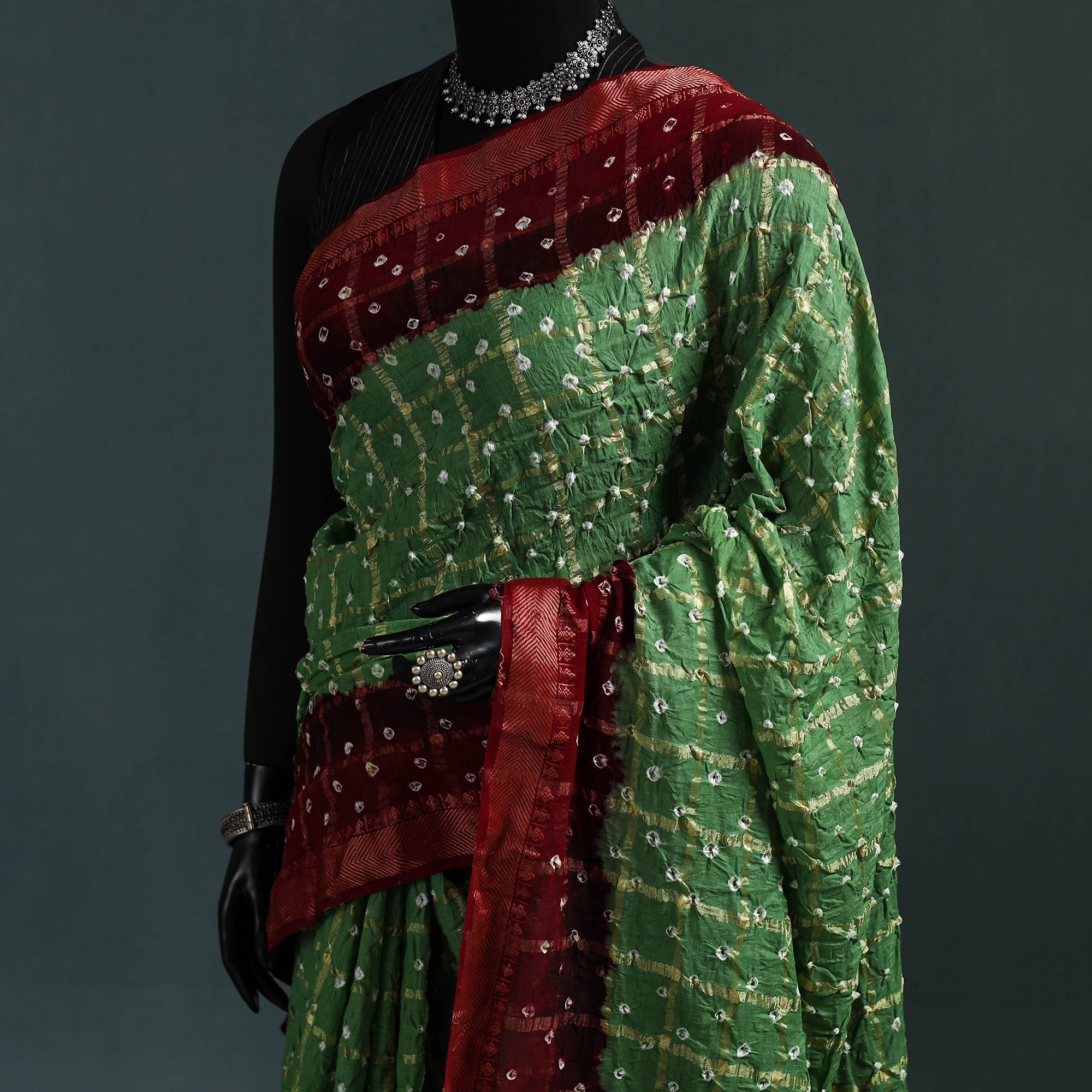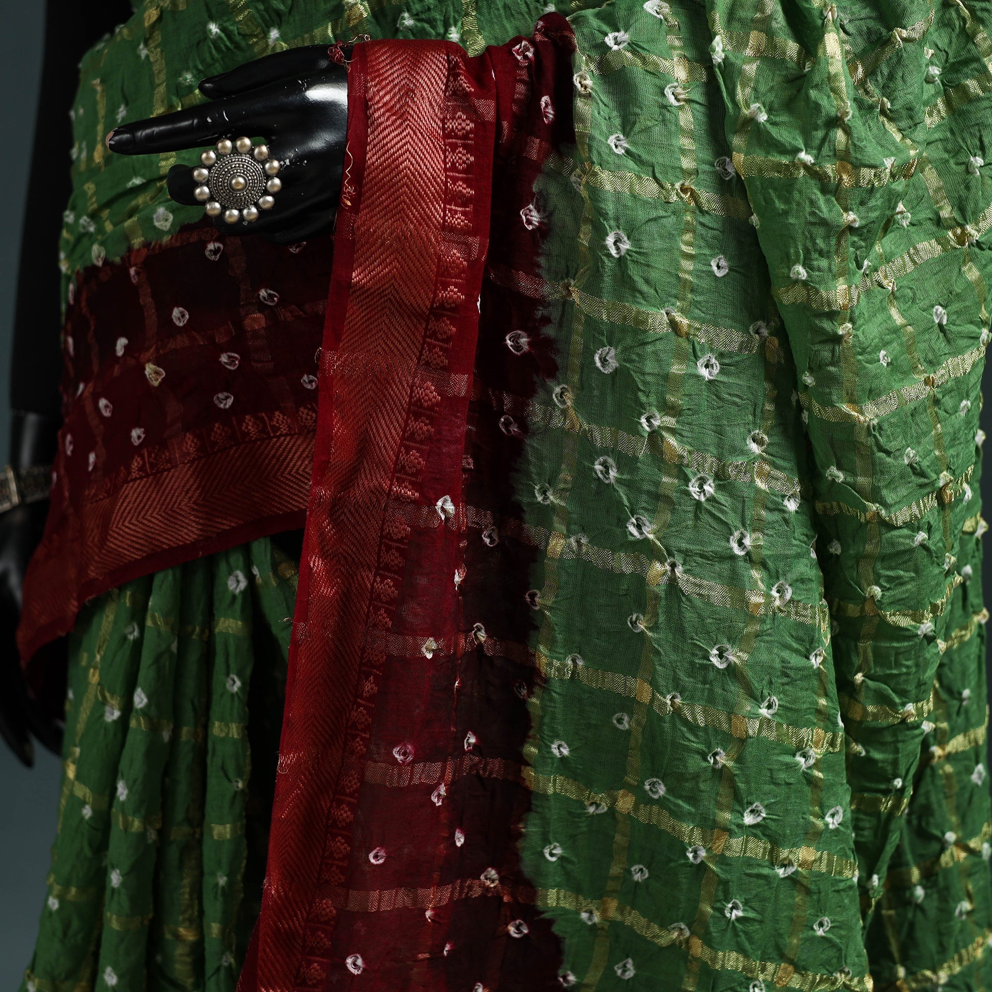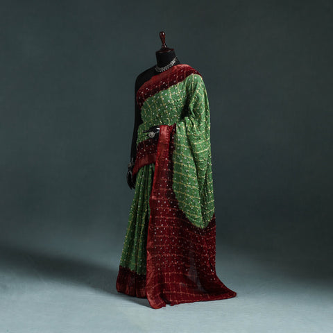 | Material | Kutch bandhani tie-dye cotton saree is created using a traditional technique practiced by artisans for generations. The process involves tying the fabric at multiple points with threads before dyeing, resulting in distinctive dotted designs that give each saree a unique look. Made from breathable cotton, it is comfortable to wear for long hours. This saree is suitable for everyday wear, office use, small gatherings and occasions. |