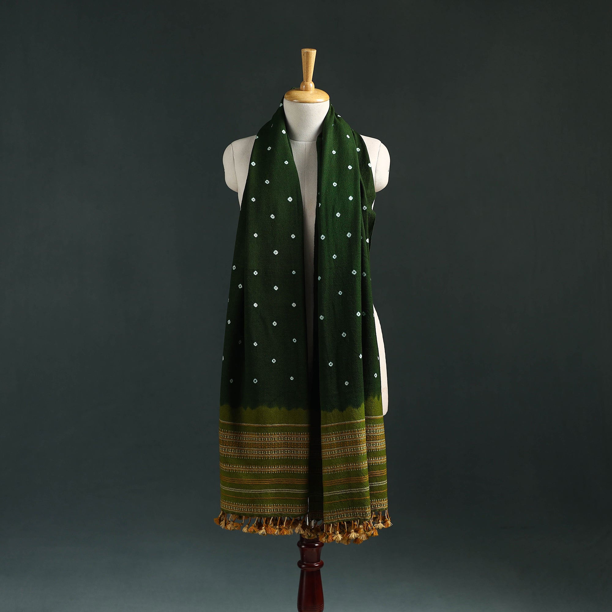 • Kutch bandhani tie-dye handwoven merino wool shawl 07