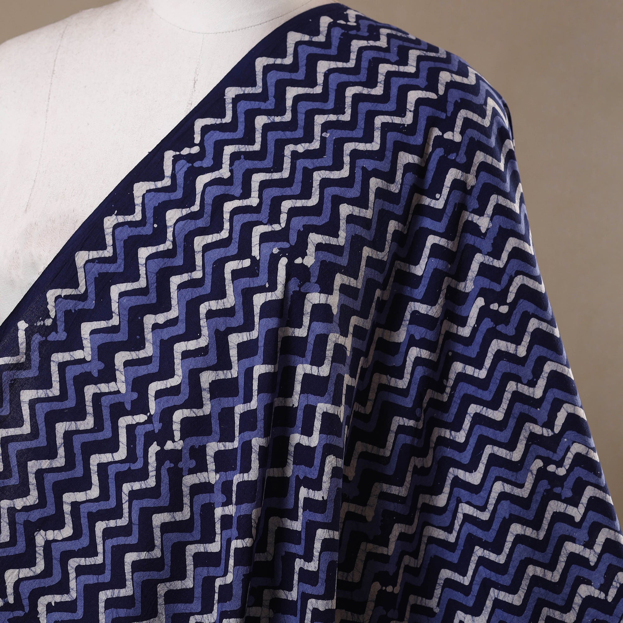 This blue Kutch batik fabric is created using the centuries-old wax resist dyeing method, where molten wax is applied before dyeing to form intricate motifs. Crafted in breathable cotton, it blends durability with comfort, making it perfect for ethnic wear, casual outfits, or decor projects.