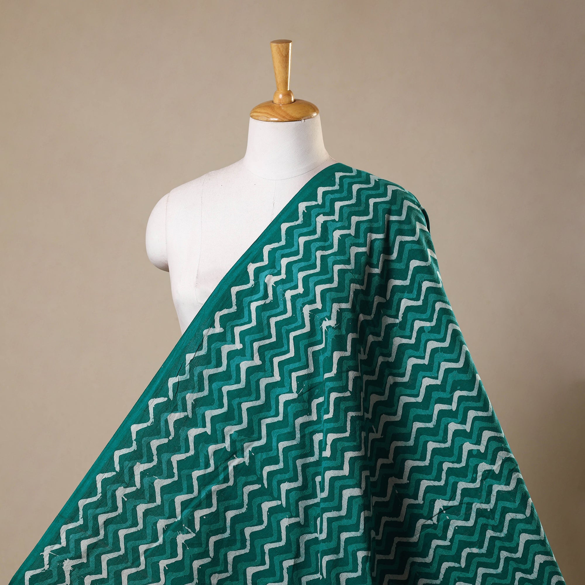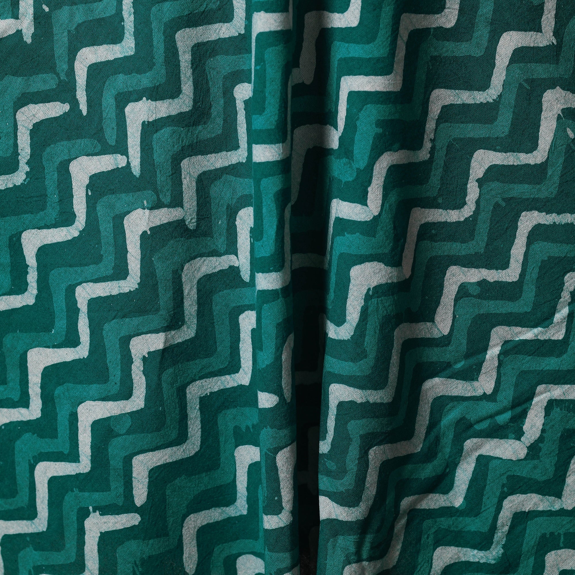 This green Kutch batik fabric is created using the centuries-old wax resist dyeing method, where molten wax is applied before dyeing to form intricate motifs. Crafted in breathable cotton, it blends durability with comfort, making it perfect for ethnic wear, casual outfits, or decor projects.
