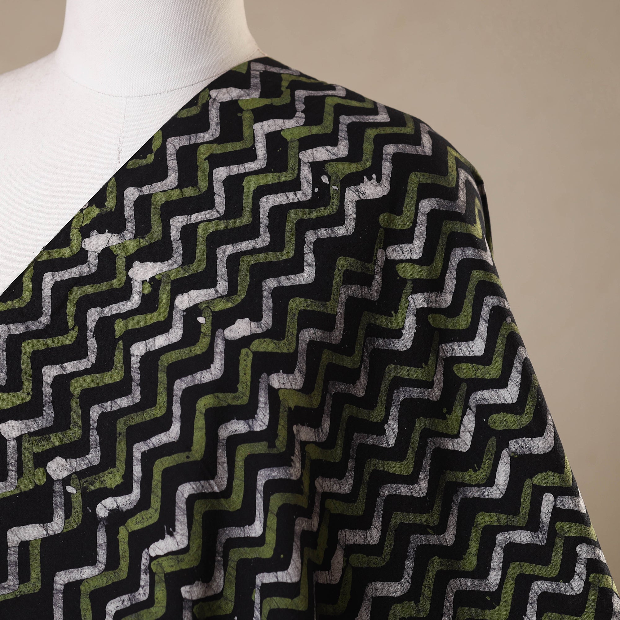This black Kutch batik fabric is created using the centuries-old wax resist dyeing method, where molten wax is applied before dyeing to form intricate motifs. Crafted in breathable cotton, it blends durability with comfort, making it perfect for ethnic wear, casual outfits, or decor projects.