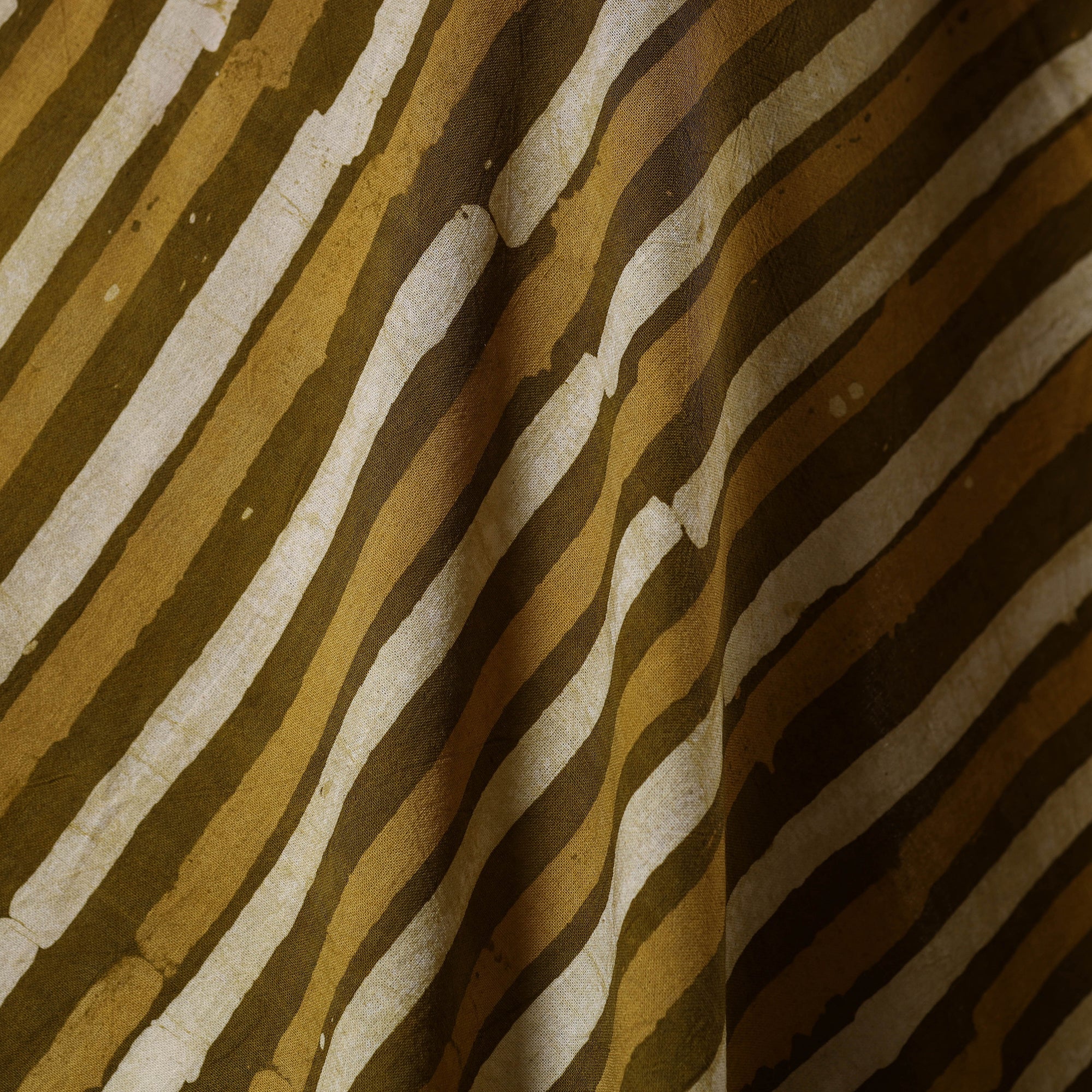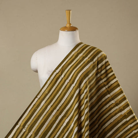 This brown hand batik print fabric from Kutch, Gujarat, is made using the age-old wax-resist dyeing method, where hot wax is applied to the cloth before dyeing to create detailed patterns. Woven in breathable cotton, it offers a perfect blend of durability and comfort, making it suitable for ethnic wear, casual ensembles, or creative home décor projects.