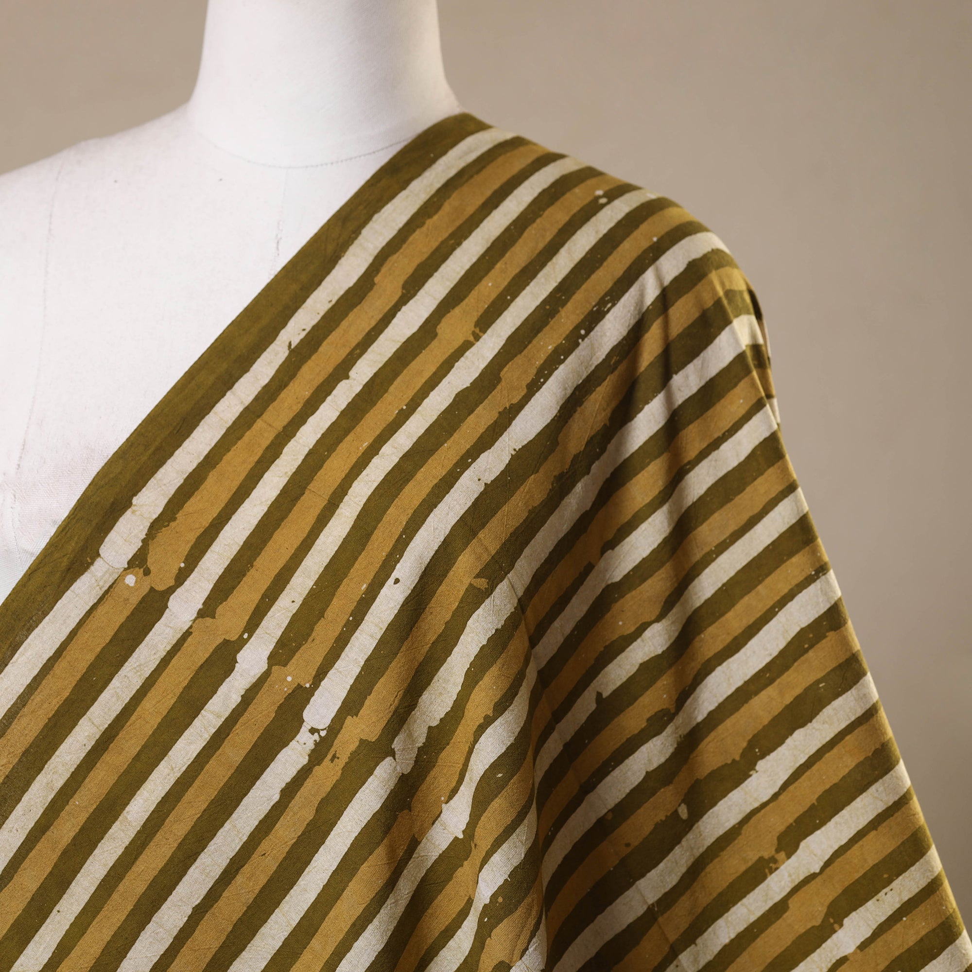 This brown Kutch batik fabric is created using the centuries-old wax resist dyeing method, where molten wax is applied before dyeing to form intricate motifs. Crafted in breathable cotton, it blends durability with comfort, making it perfect for ethnic wear, casual outfits, or decor projects.