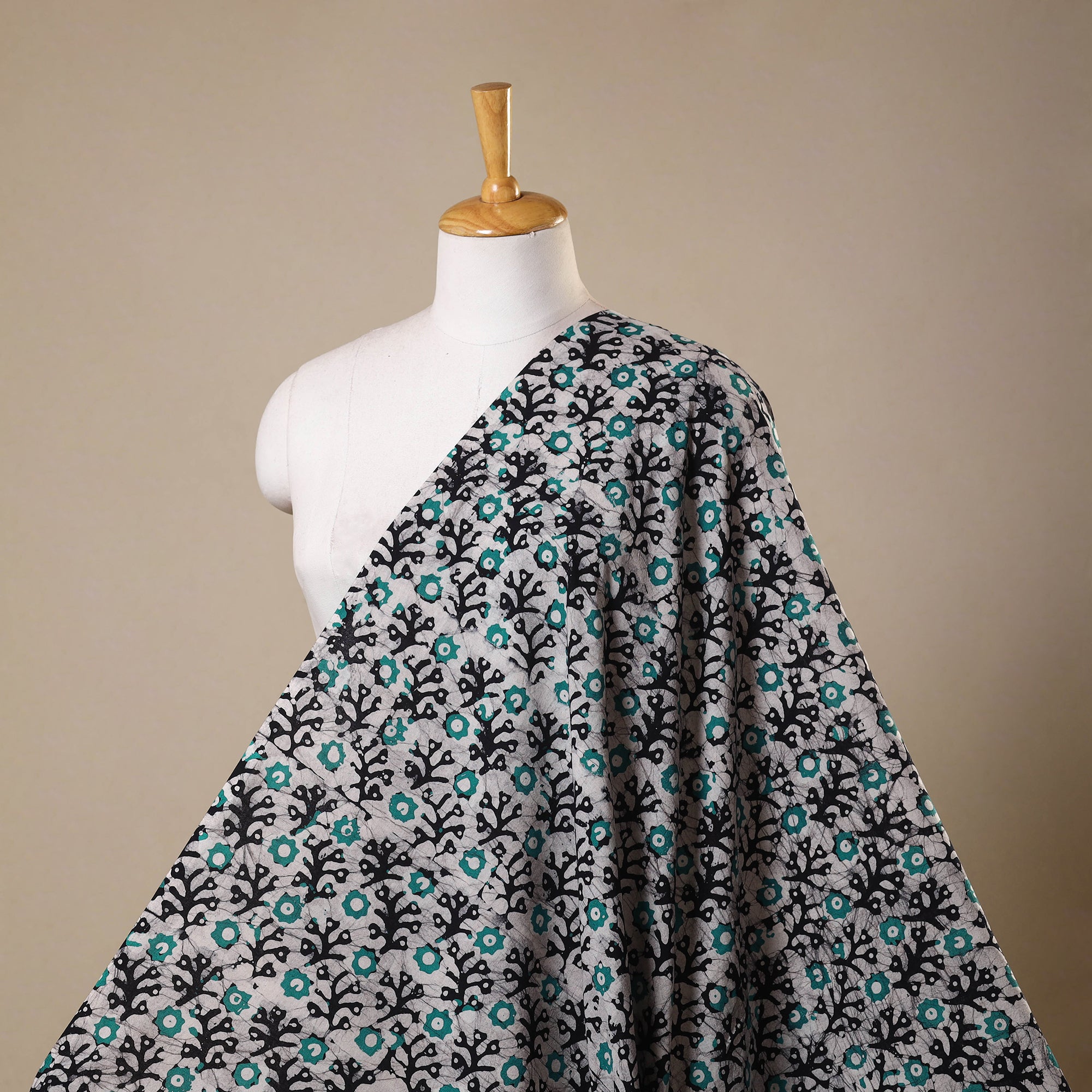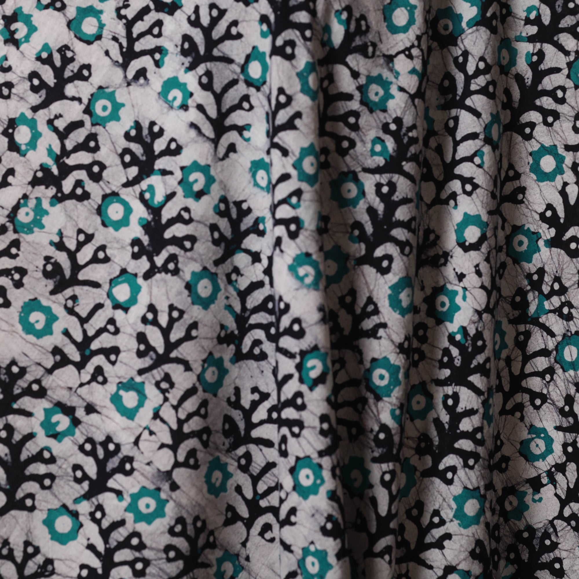 This grey Kutch batik fabric is created using the centuries-old wax resist dyeing method, where molten wax is applied before dyeing to form intricate motifs. Crafted in breathable cotton, it blends durability with comfort, making it perfect for ethnic wear, casual outfits, or decor projects.