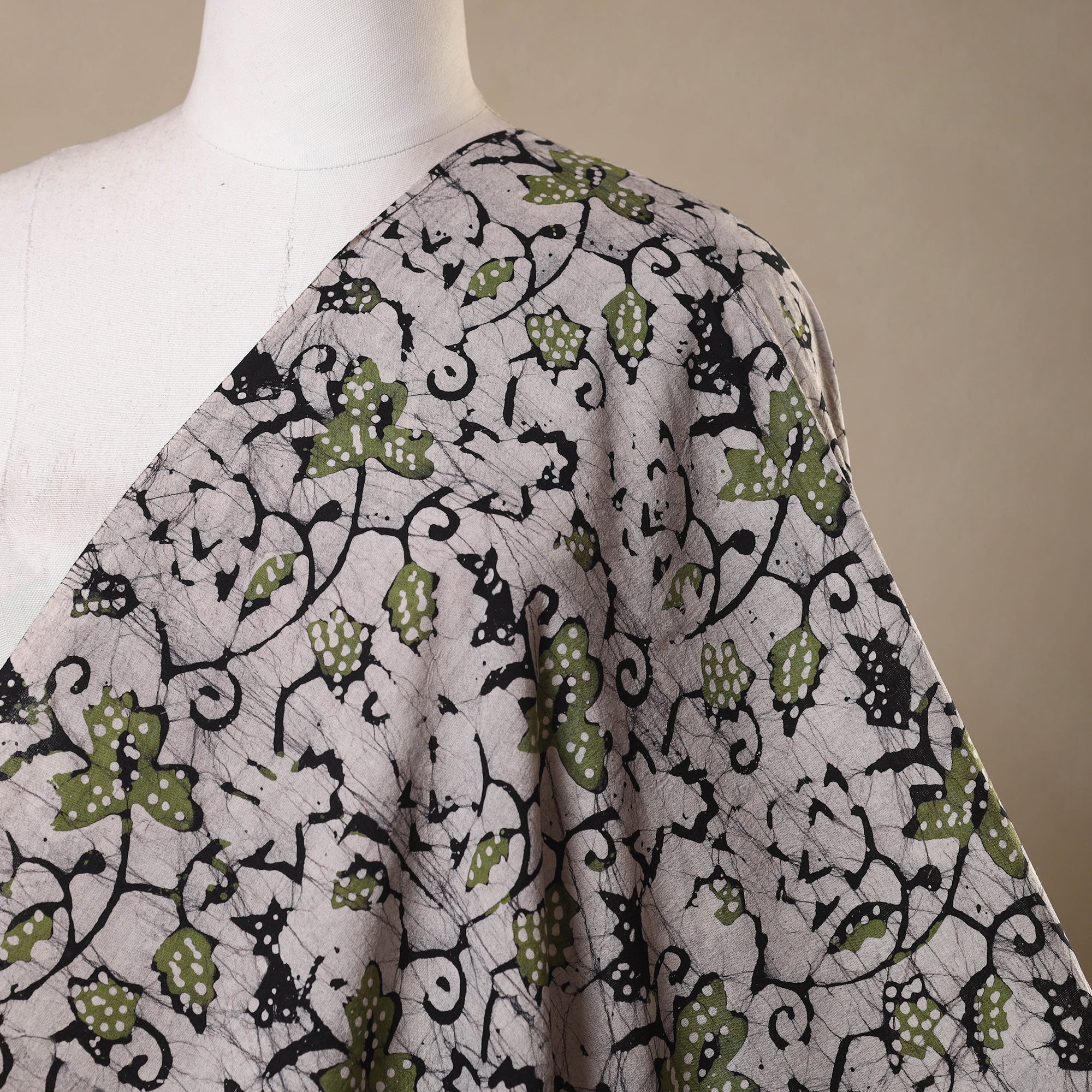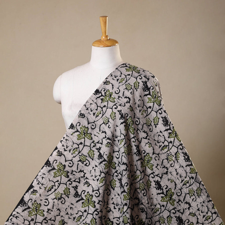 This grey Kutch batik fabric is created using the centuries-old wax resist dyeing method, where molten wax is applied before dyeing to form intricate motifs. Crafted in breathable cotton, it blends durability with comfort, making it perfect for ethnic wear, casual outfits, or decor projects.
