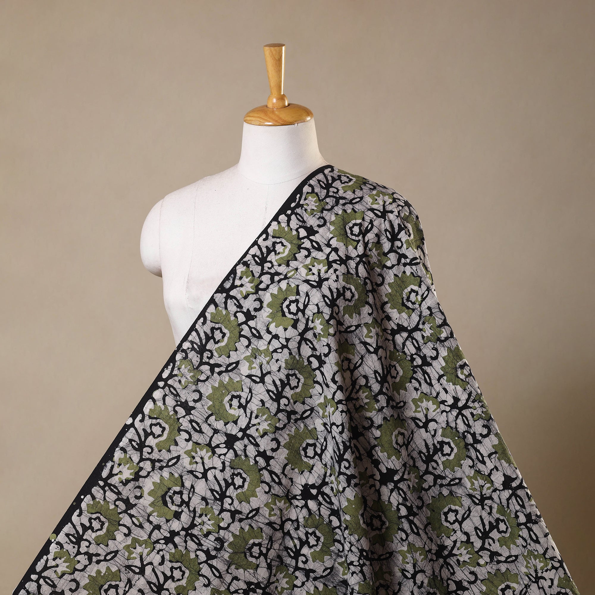 Batik is a very famous technique of wax-resist dyeing applied to whole cloth. The traditional designs and motifs in Indian batik are exceptional. It is a type of resist printing process wherein wax is applied to the fabric in specific areas.