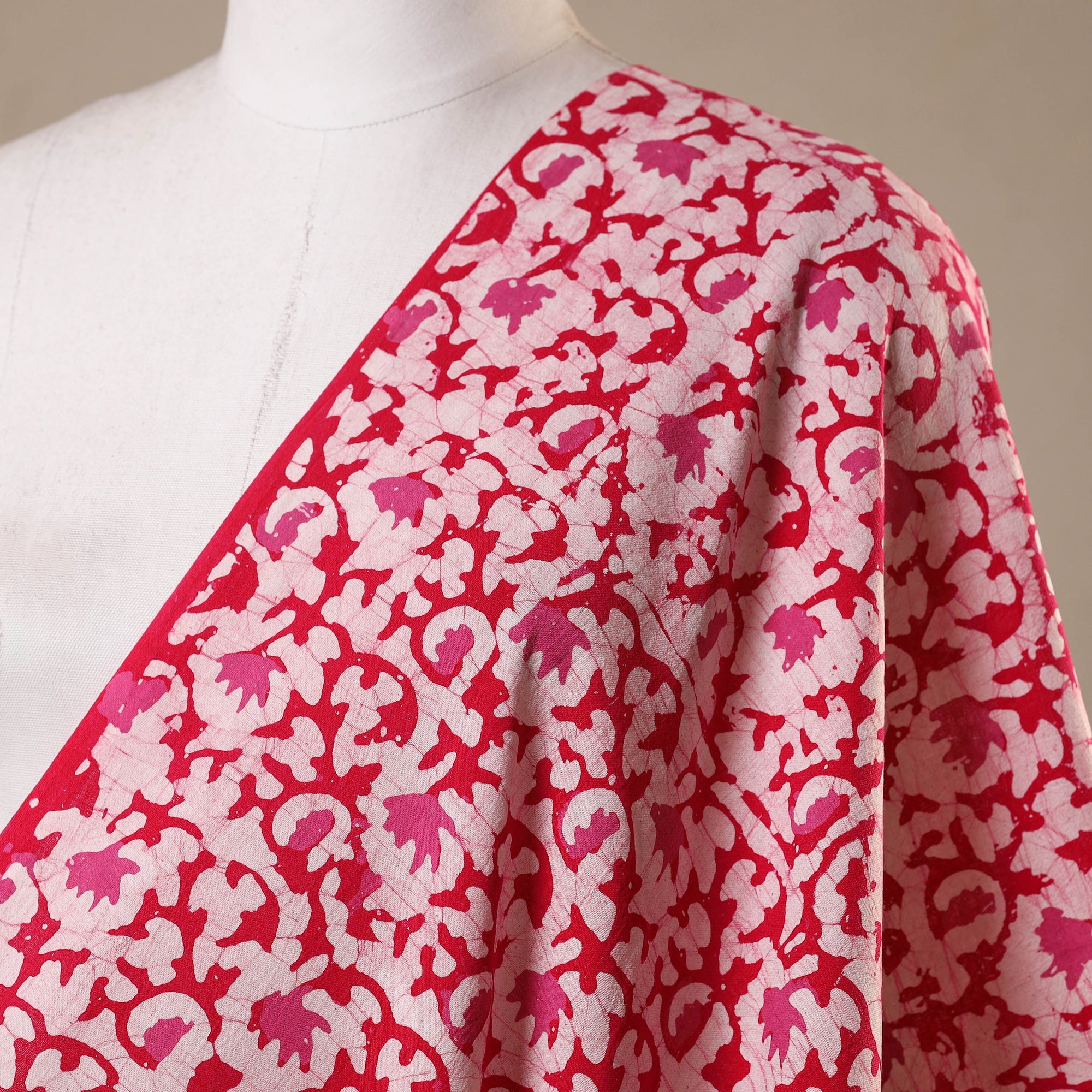 This red Kutch batik fabric is created using the centuries-old wax resist dyeing method, where molten wax is applied before dyeing to form intricate motifs. Crafted in breathable cotton, it blends durability with comfort, making it perfect for ethnic wear, casual outfits, or decor projects.