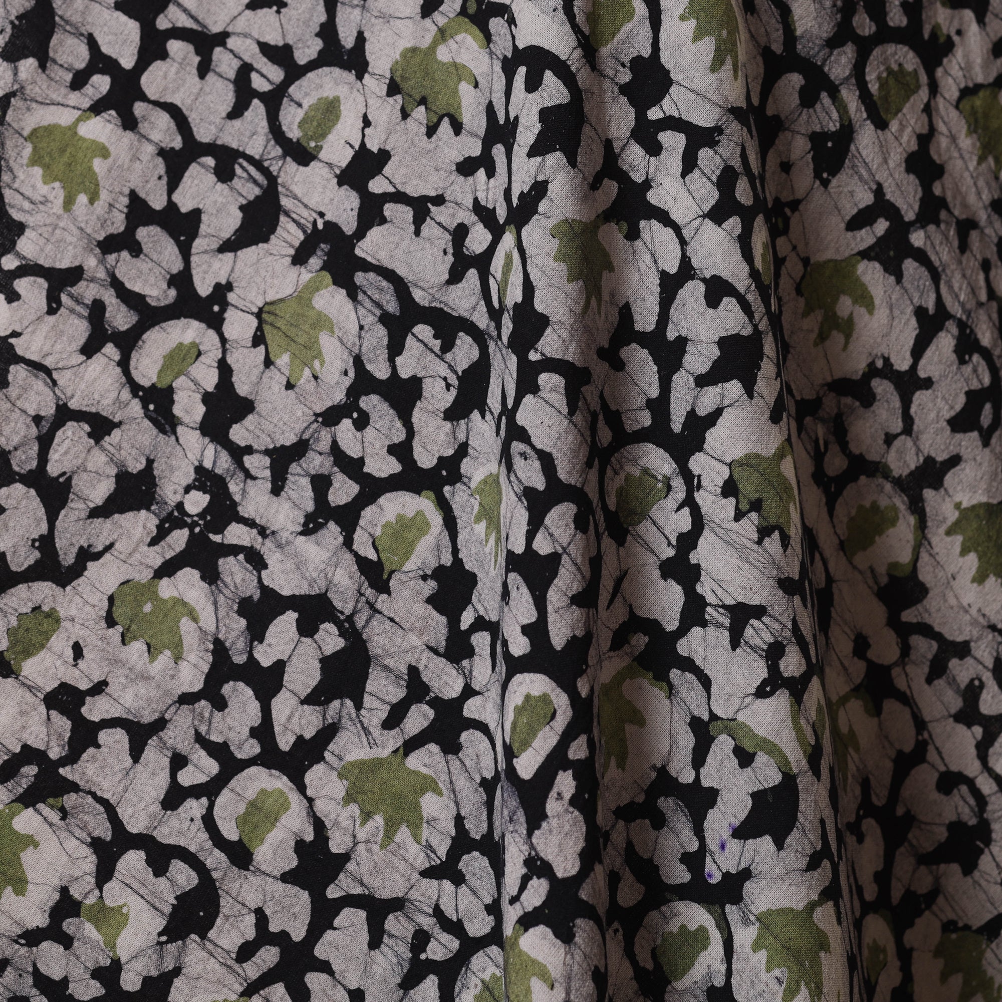 This black Kutch batik fabric is created using the centuries-old wax resist dyeing method, where molten wax is applied before dyeing to form intricate motifs. Crafted in breathable cotton, it blends durability with comfort, making it perfect for ethnic wear, casual outfits, or decor projects.