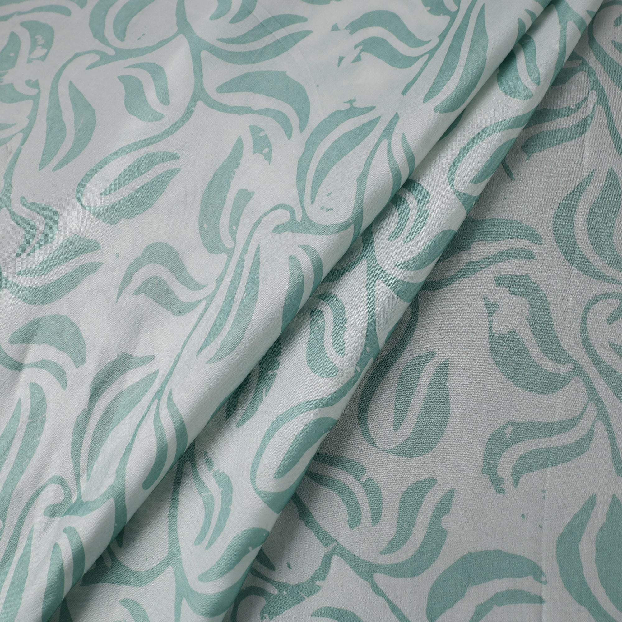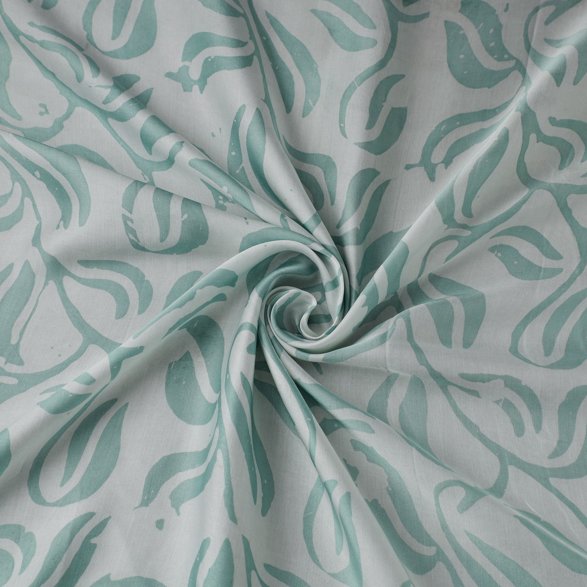 This green hand batik print fabric from Kutch is created using the centuries-old wax-resist dyeing technique, where molten wax is applied before dyeing to form intricate motifs. This fabric is made from modal silk, which is a viscose by cotton blend, offering a beautiful drape, subtle sheen, and enhanced comfort. Perfect for creating ethnic wear, casual outfits, or elegant home décor projects, it beautifully combines traditional artistry with a contemporary touch.