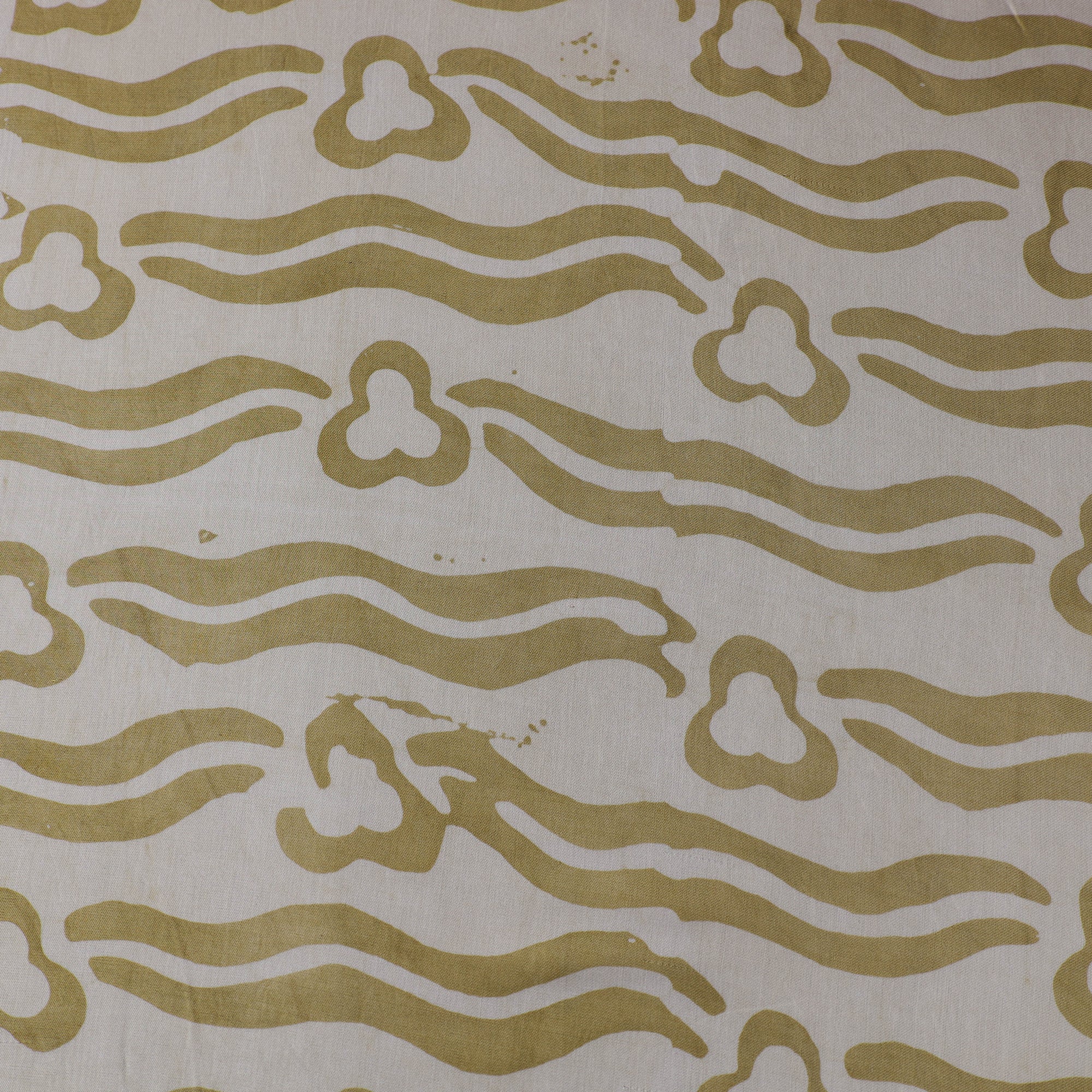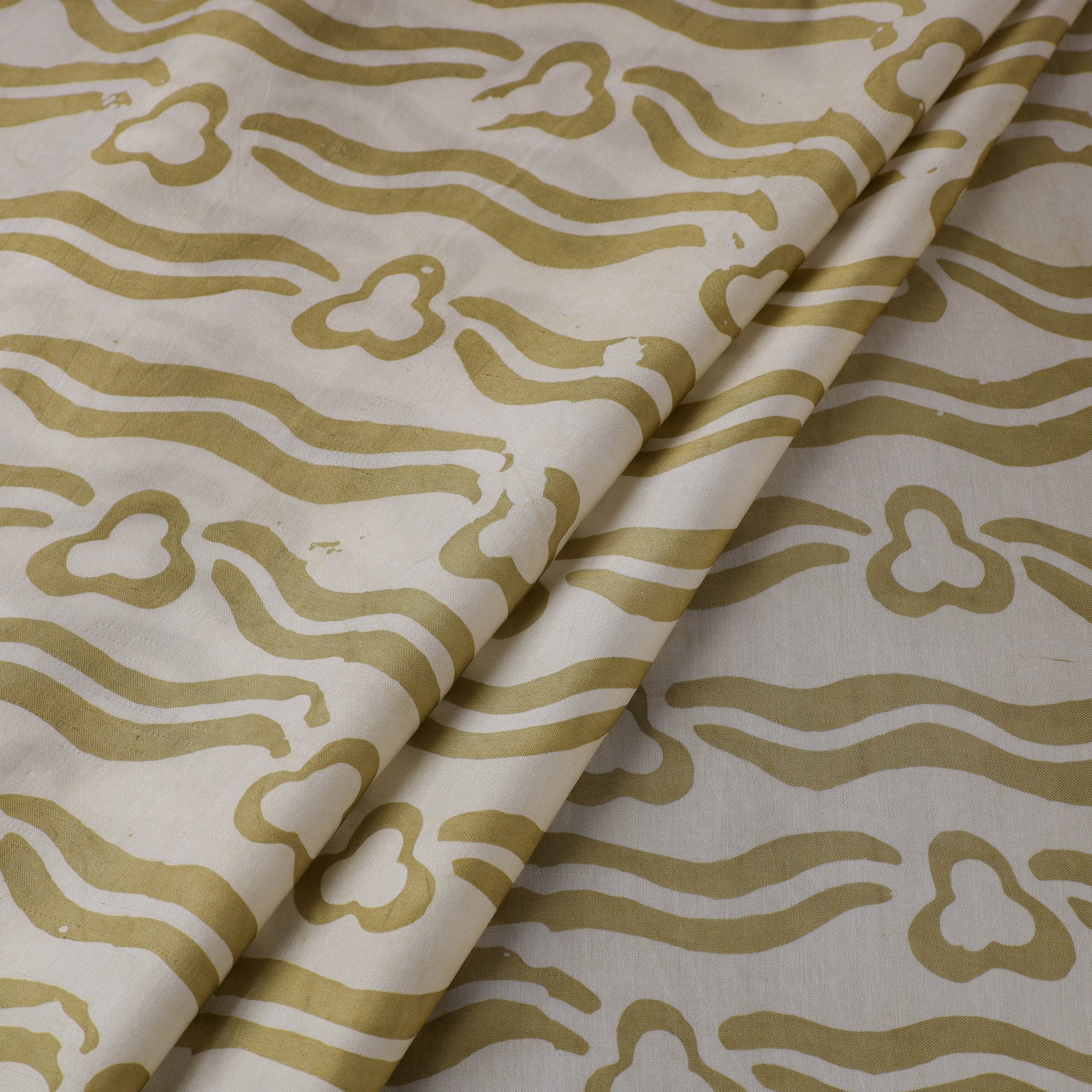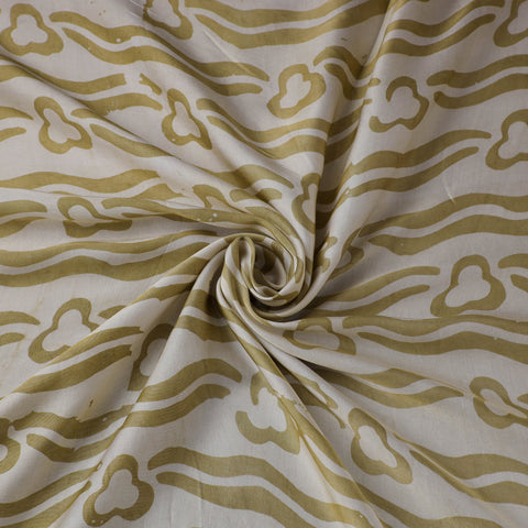 This green hand batik print fabric from Kutch is created using the centuries-old wax-resist dyeing technique, where molten wax is applied before dyeing to form intricate motifs. This fabric is made from modal silk, which is a viscose by cotton blend, offering a beautiful drape, subtle sheen, and enhanced comfort. Perfect for creating ethnic wear, casual outfits, or elegant home décor projects, it beautifully combines traditional artistry with a contemporary touch.