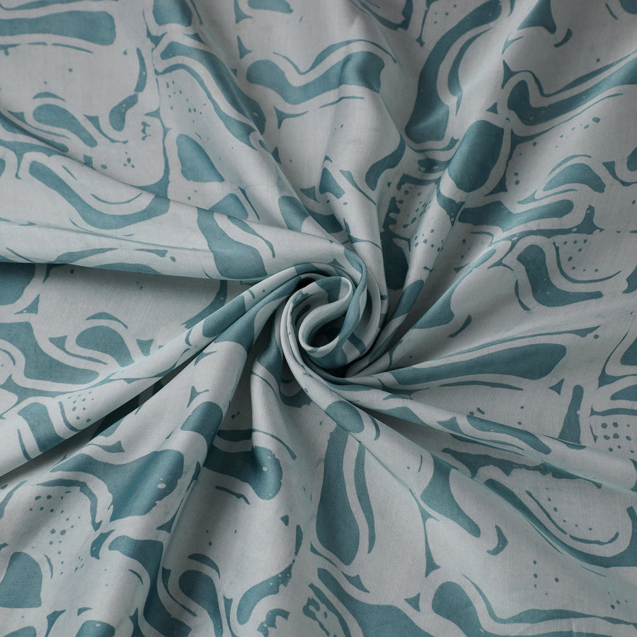 This blue hand batik print fabric from Kutch is created using the centuries-old wax-resist dyeing technique, where molten wax is applied before dyeing to form intricate motifs. This fabric is made from modal silk, which is a viscose by cotton blend, offering a beautiful drape, subtle sheen, and enhanced comfort. Perfect for creating ethnic wear, casual outfits, or elegant home décor projects, it beautifully combines traditional artistry with a contemporary touch.