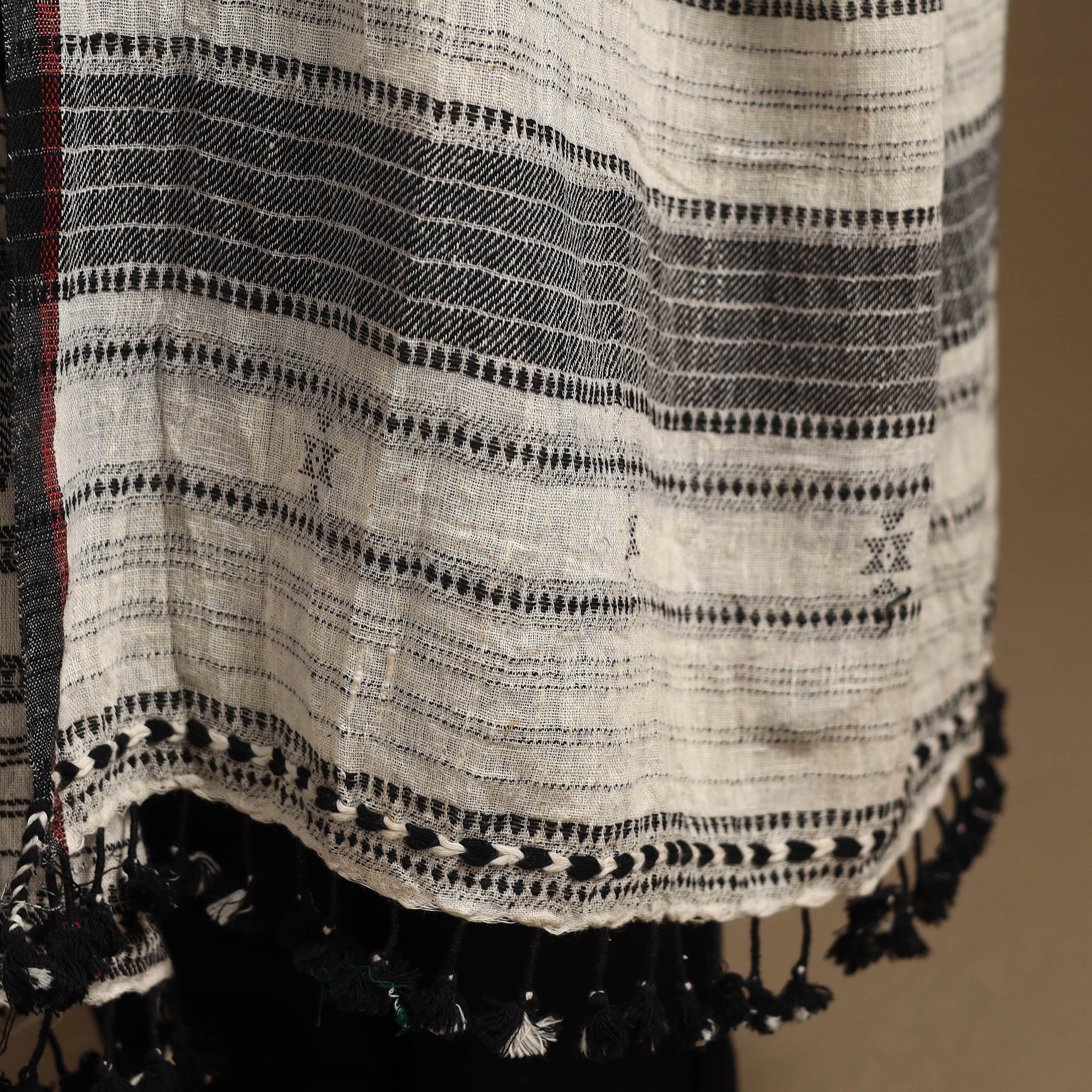 This fine-quality blue Kutch bhujodi handloom bandhani dupatta with tassels, crafted using kala cotton from Gujarat. Handwoven by skilled artisans in the village of Bhujodi, this piece features intricate patterns of traditional bhujodi weaving, paired with bandhani tie-dye that lends a unique touch. It adds charm to both everyday attire and festive occasions.