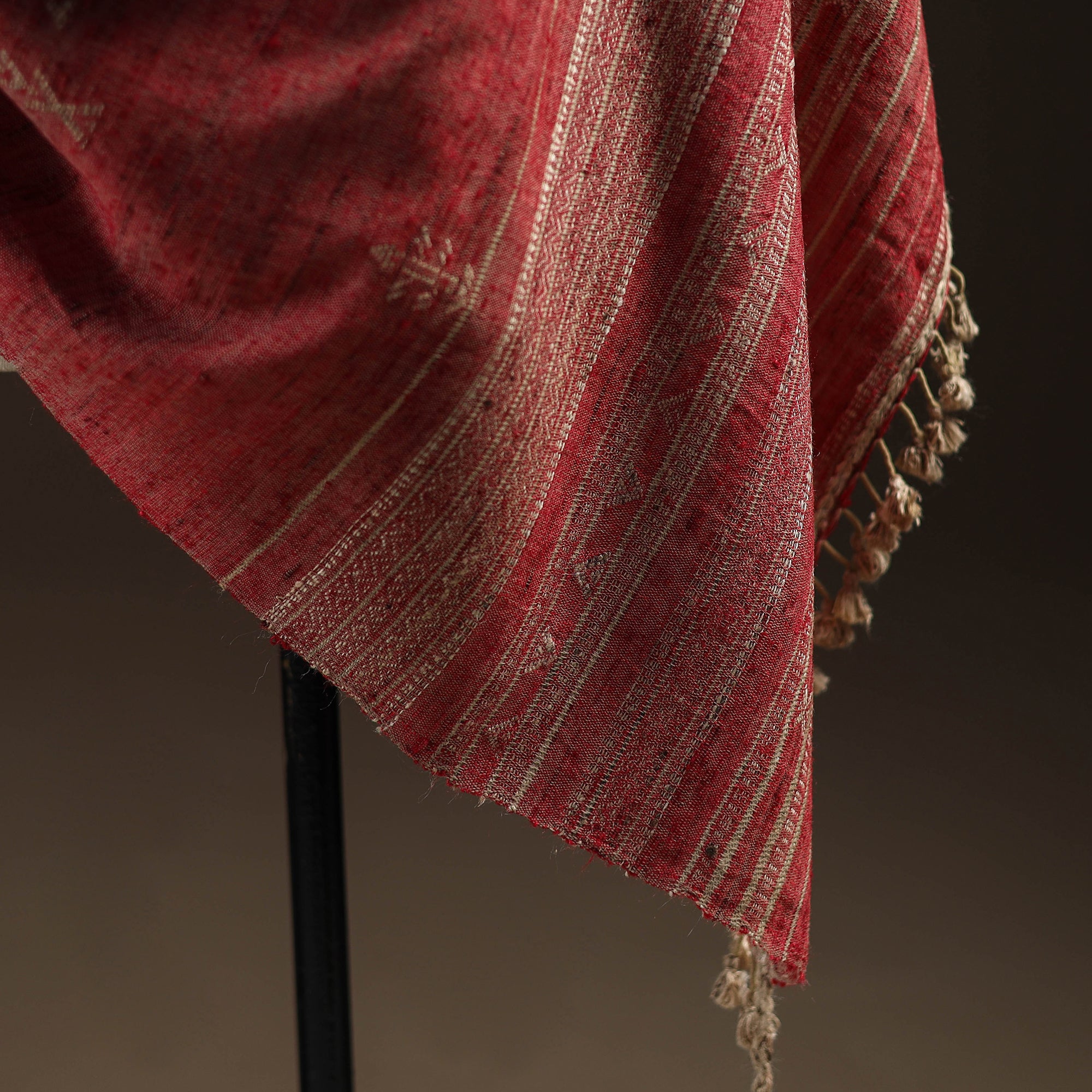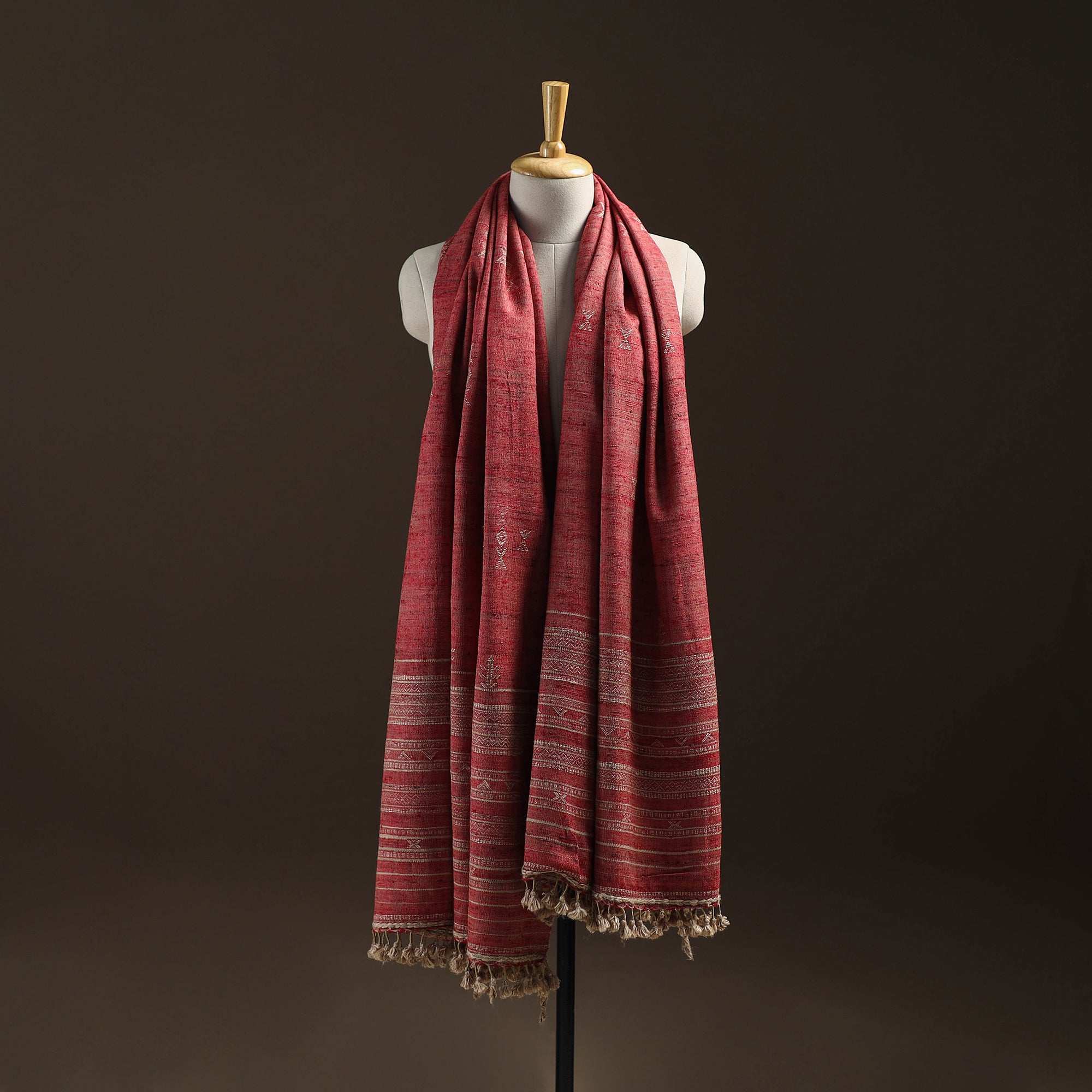 Kutch bhujodi handspun handwoven chomuk buta shawl crafted by skilled artisan Vankar Bhimji Kanji from Bhuj Gujarat. Adorned with intricate Kutchi motifs and tassle. Made from merino wool x katia silk it offers both warmth and comfort. A perfect blend of tradition and style ideal for winter wear.