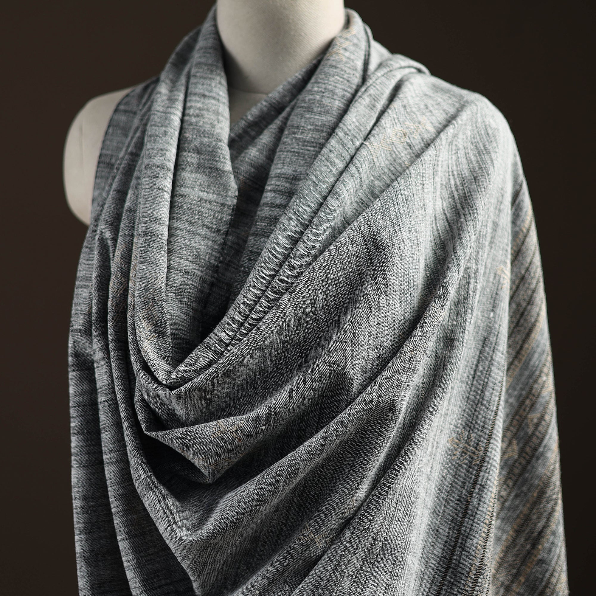 • Kutch Bhujodi Handspun Handwoven Merino Wool x Katia Silk Chomuk Buta Shawl 08
