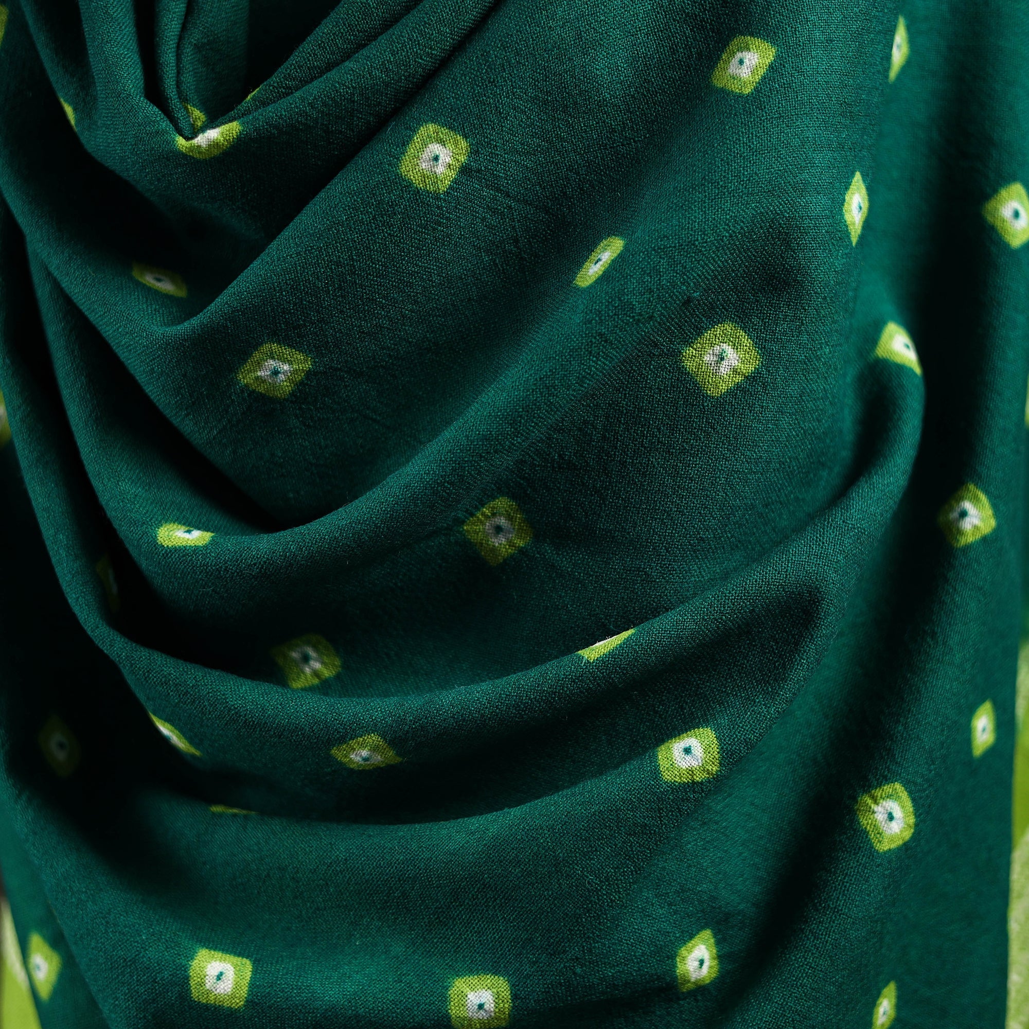 Green - Kutch Bhujodi Handwoven Merino Wool Bandhani Tie-Dye Shawl 103