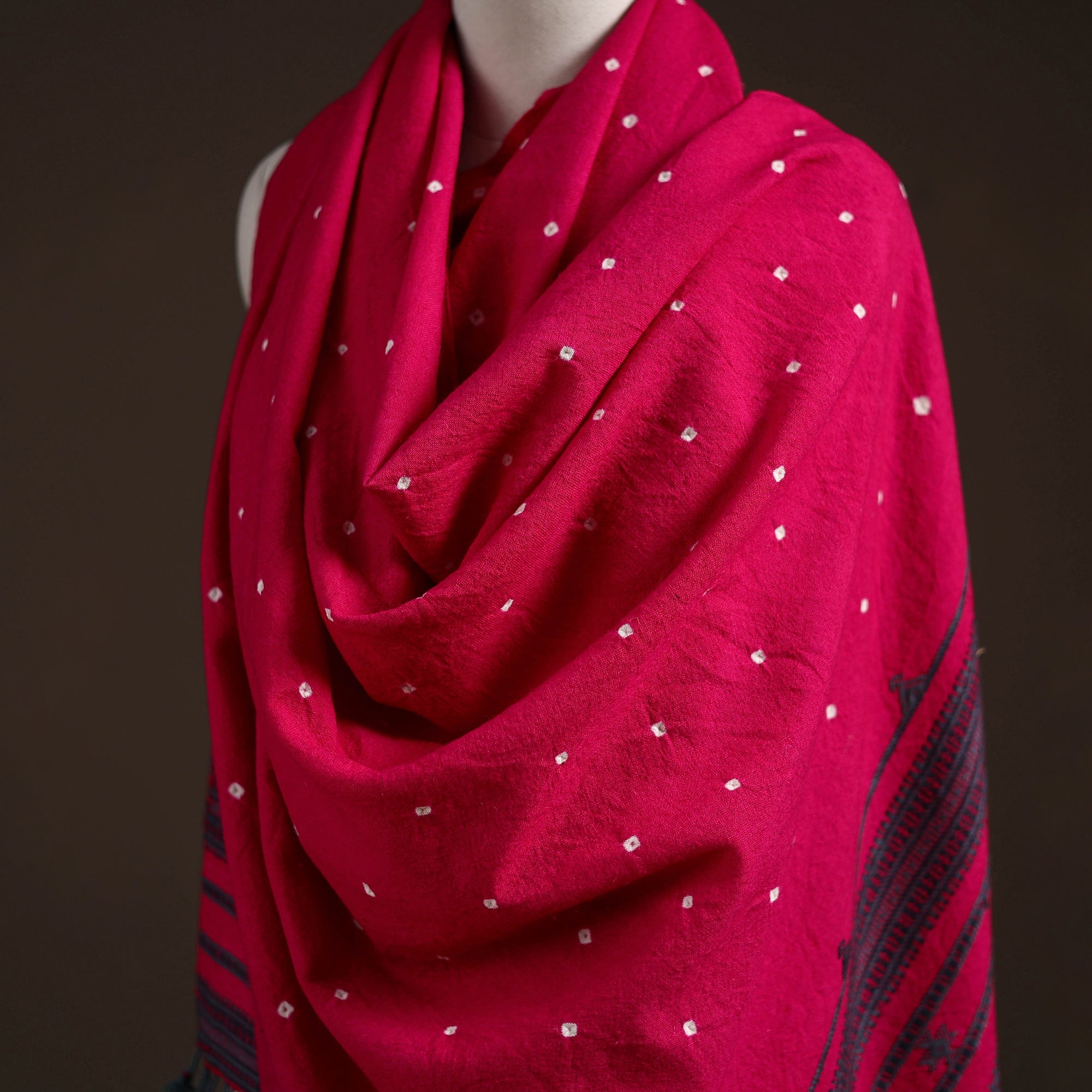 • Kutch bhujodi handwoven merino wool bandhani tie-dye shawl