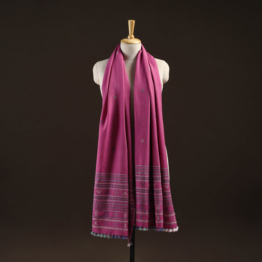 Red - Kutch Bhujodi Handwoven Merino Wool Dhabla Shawl 20