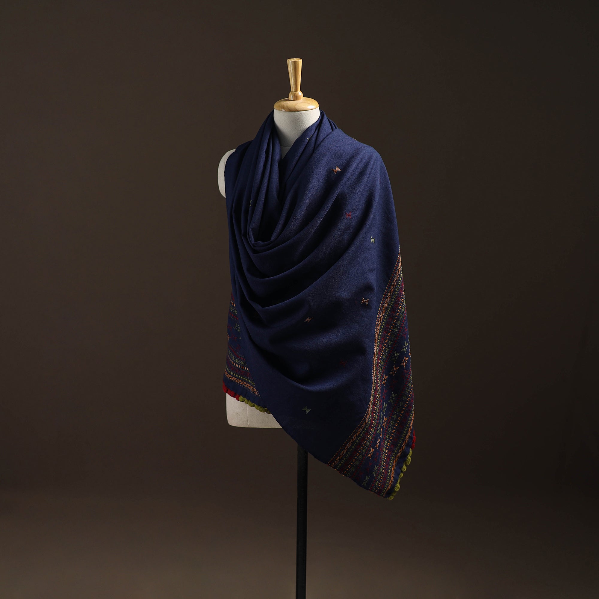 Kutch bhujodi handwoven dhabla shawl crafted by skilled artisan Vankar Bhimji Kanji from Bhuj Gujarat. Adorned with intricate Kutchi motifs and tassle. Made from merino wool wool it offers both warmth and comfort. A perfect blend of tradition and style ideal for daily winter wear.